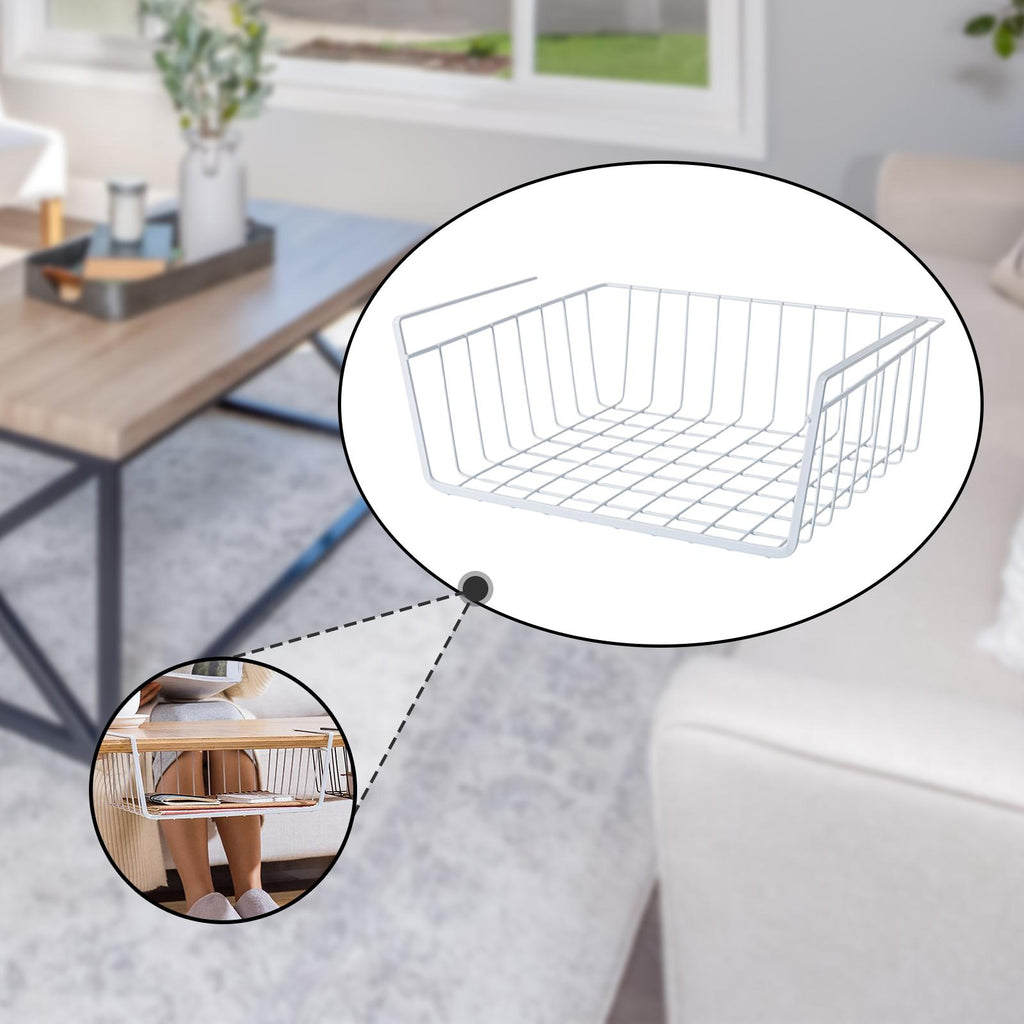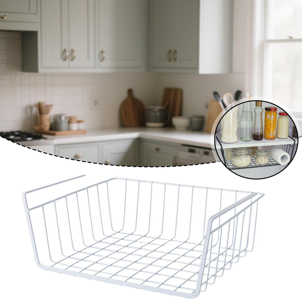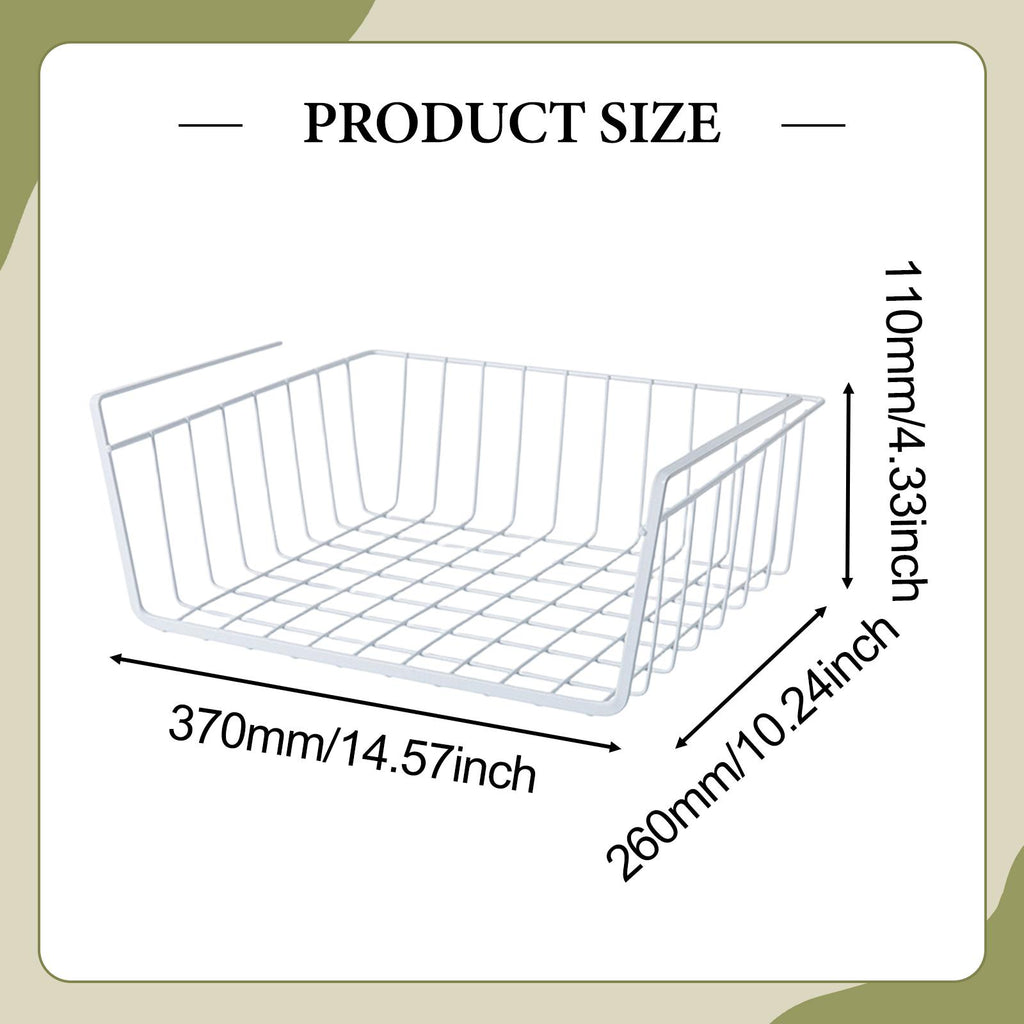 - 【Versatile】: Under Shelf Wire Basket is perfect for storing and organizing a variety of items, such as spice jars, condiment bottles, and kitchen utensils. It provides extra storage space for essentials and maximizes your cabinet space