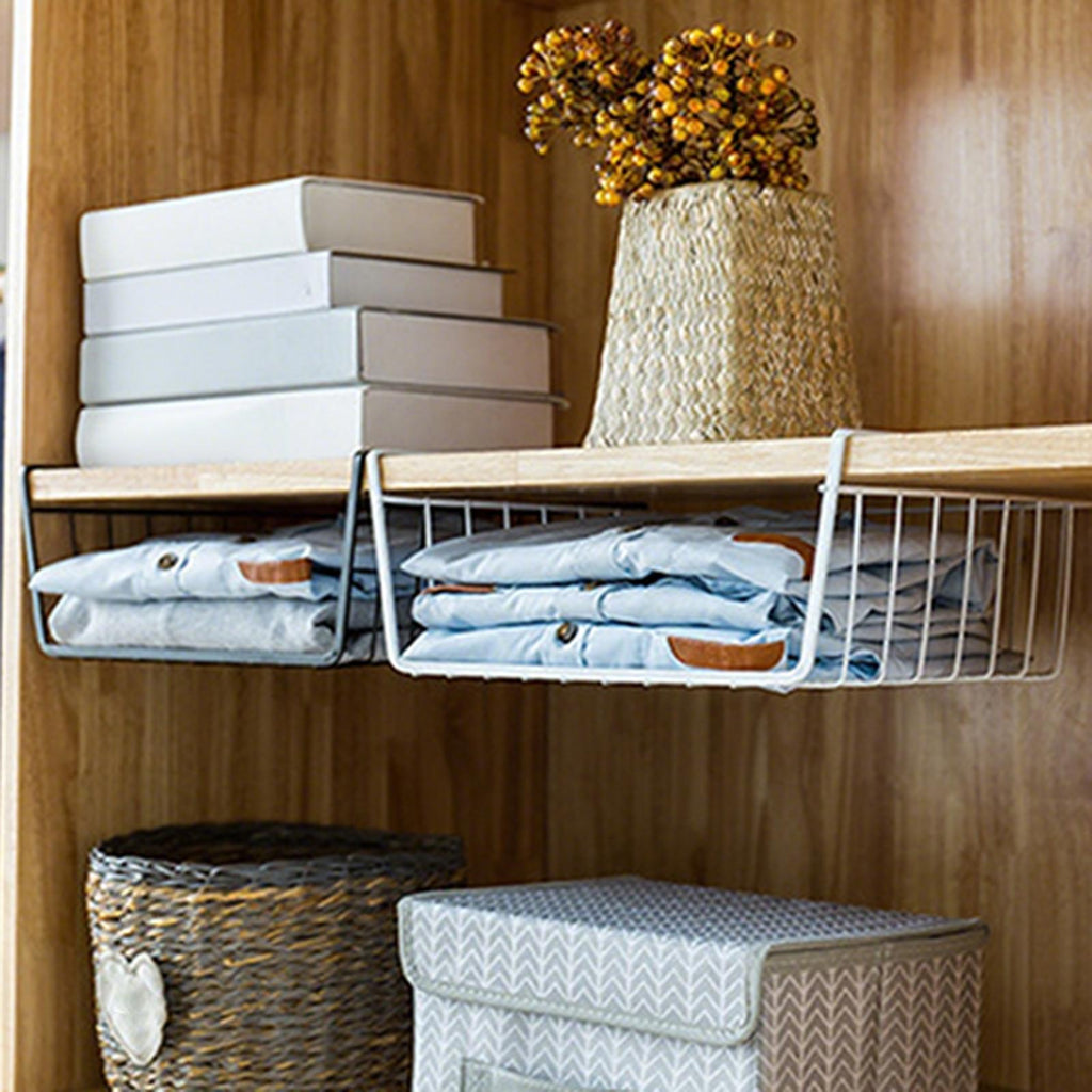 - 【Space Saving】: Under Cabinet Shelf Basket is an ideal space saving option for your kitchen or dorm room. It easily hangs inside a cabinet or under a shelf, maximizing your storage space