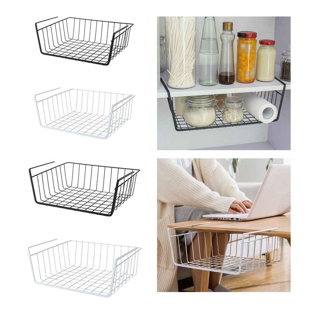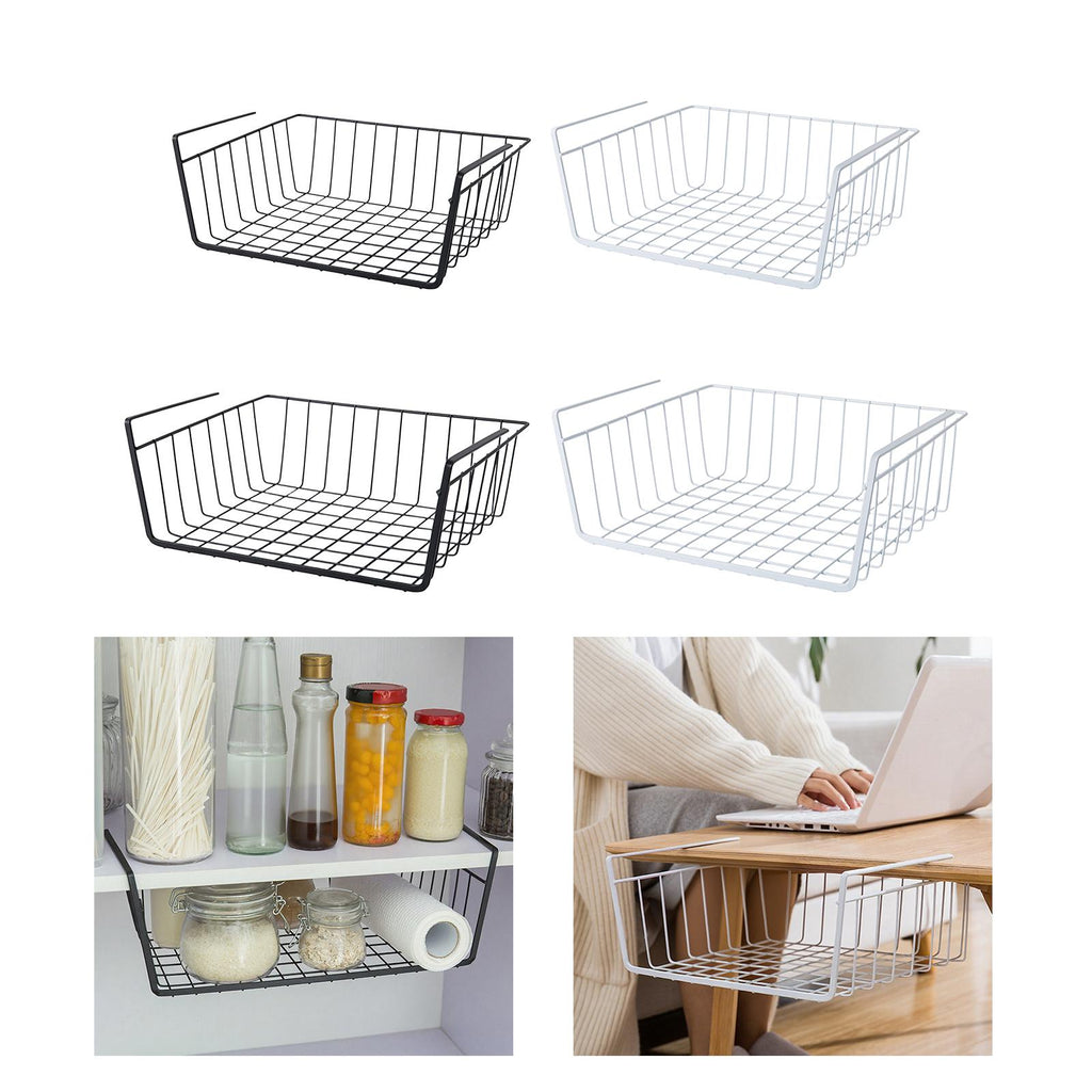 - 【Versatile】: Under Shelf Wire Basket is perfect for storing and organizing a variety of items, such as spice jars, condiment bottles, and kitchen utensils. It provides extra storage space for essentials and maximizes your cabinet space