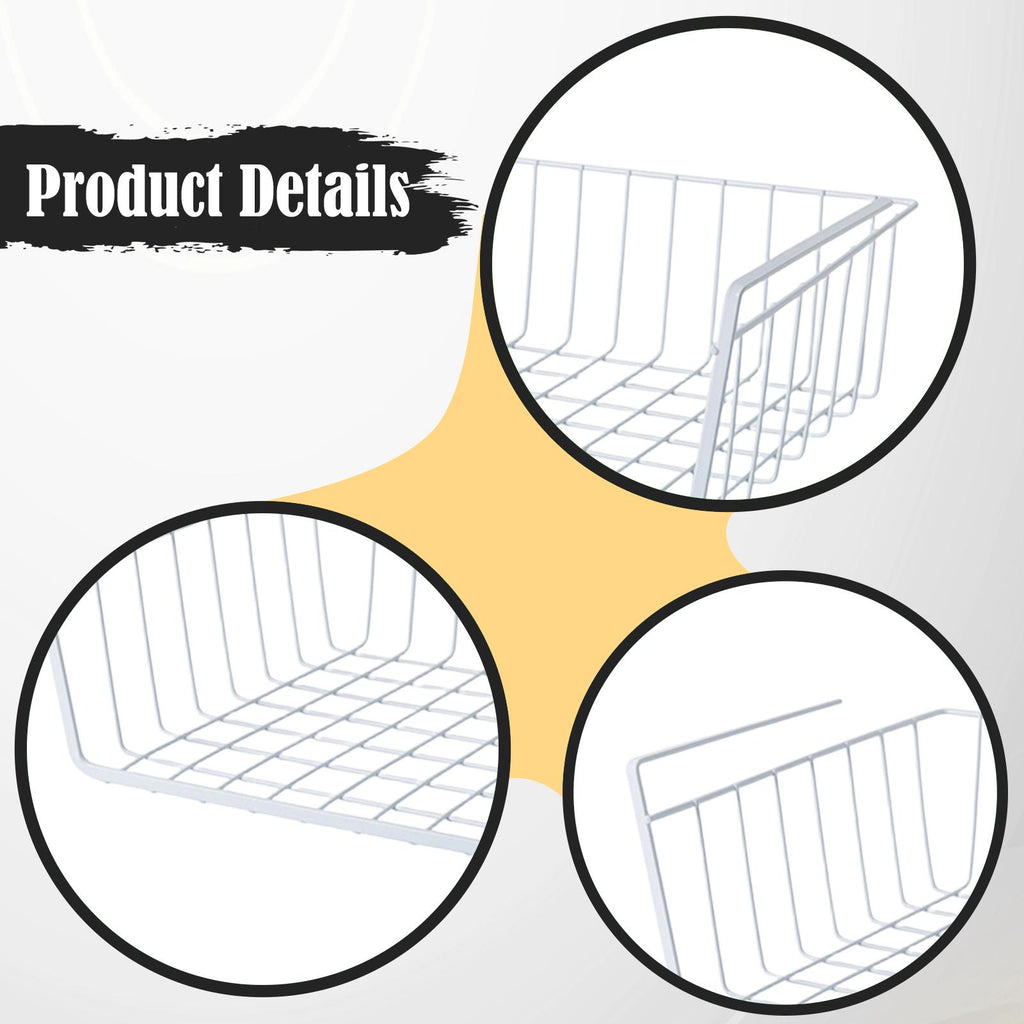 - 【Versatile】: Under Shelf Wire Basket is perfect for storing and organizing a variety of items, such as spice jars, condiment bottles, and kitchen utensils. It provides extra storage space for essentials and maximizes your cabinet space
