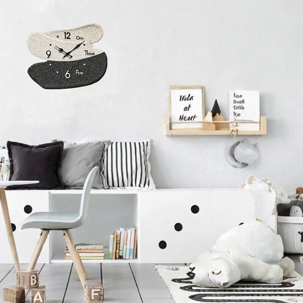 Maxbell Wall Clock Wood Creative Modern Wall Mount Ornament for School Bathroom Home Black White