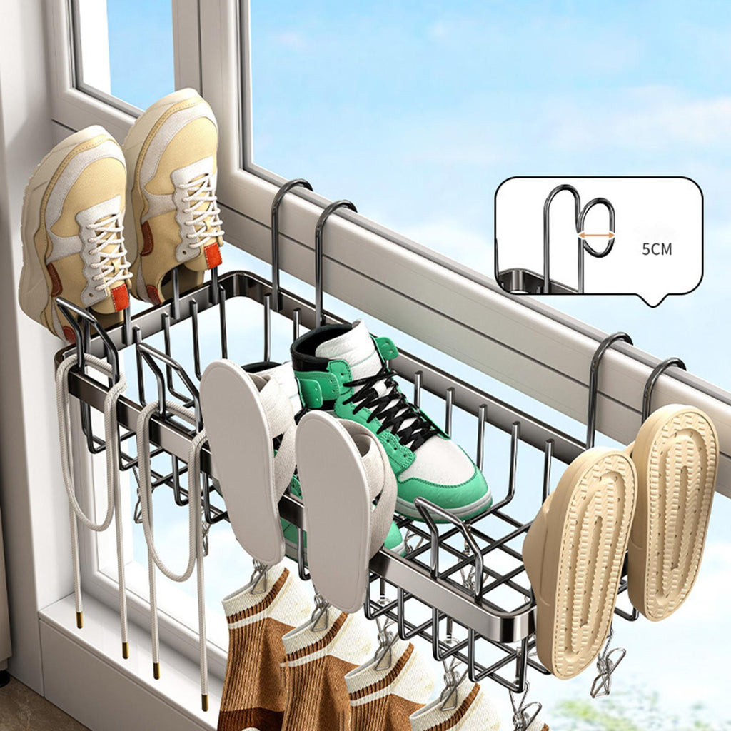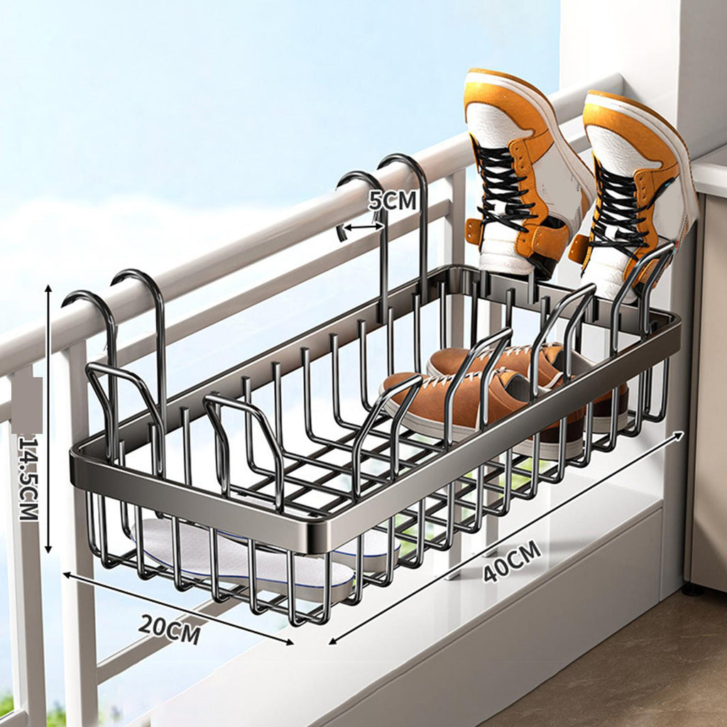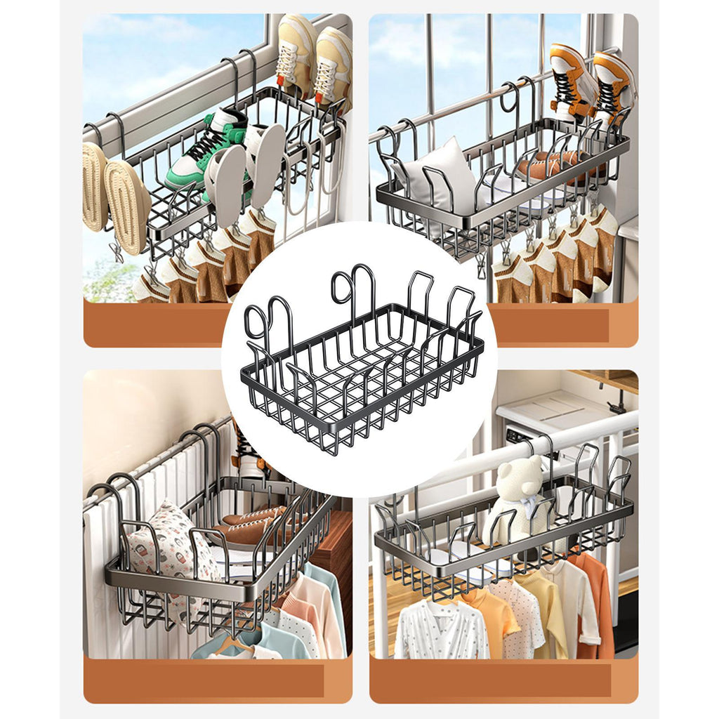 【Sturdy Design】: Equipped with thickened hooks, this Storage Basket ensures stability when pushed into place. It is compatible with different types of window and railings, providing a fit without the need for drilling