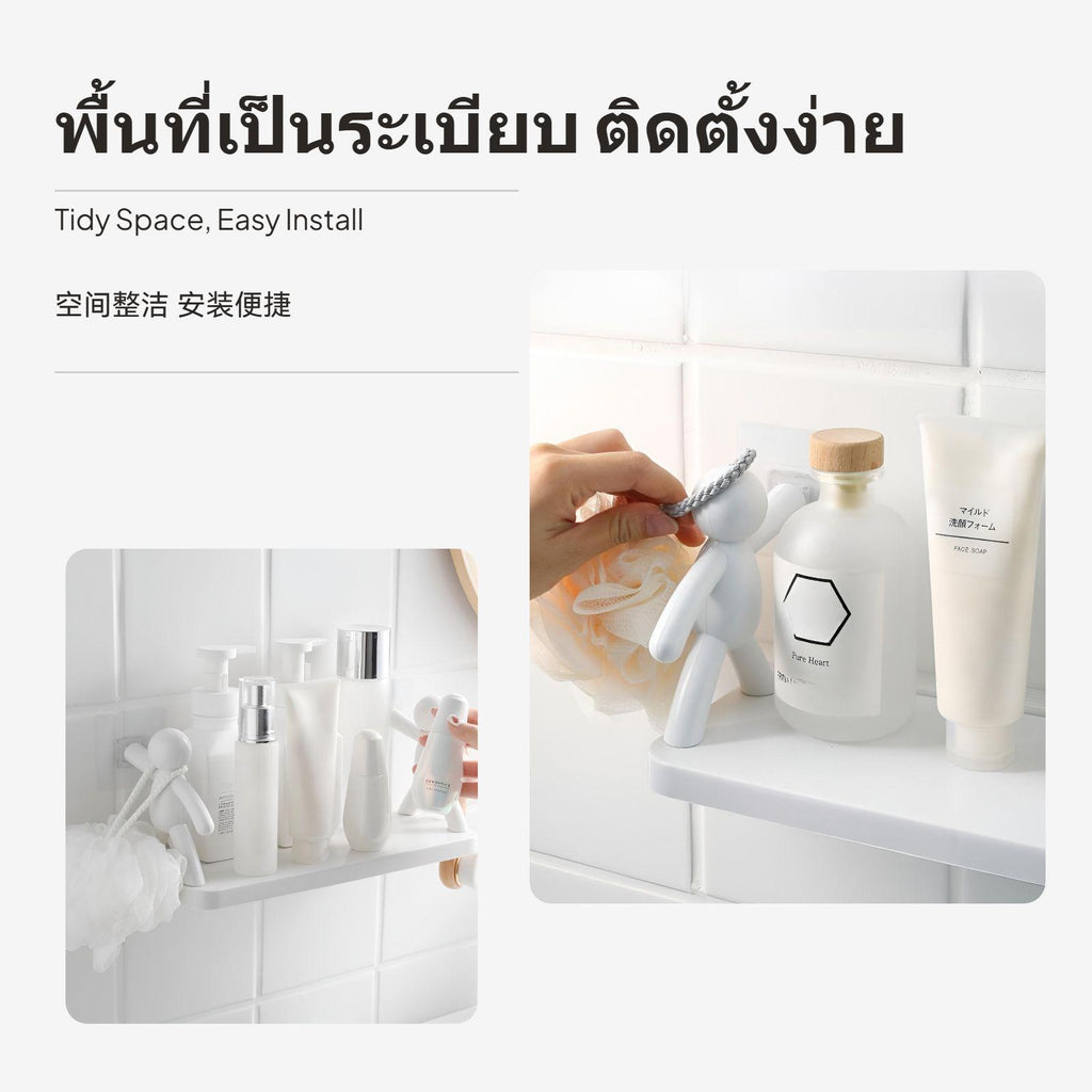 【Multi-Functional Wall Organizer】 This wall mounted bathroom organizer features a creative human shape design, combining fun and practicality for your home. perfect for storing toiletries, spices, or office supplies, it keeps your space tidy and organized.【No-Drill Easy Installation】 The no-drill installation allows you to securely mount the rack without damaging your walls. easily attach it on for a hassleeffortless setup, perfect for renters or anyone seeking convenience.【sturdy Waterproof PP Material】 Made from high-quality polypropylene, this rack is waterproof and sturdy, suitable for humid environments like bathrooms and kitchens. Its robust build ensures enduring use.【Human Shape Guardrail & Hook】 The distinctive cartoon human shape side rails prevent items from falling and double as hangers for hanging small objects, maximizing storage effectiveness.【small Size for adaptable Use】 Measuring 33cm x 13.5cm x 14.5cm, this small rack accommodates various spaces such as bathrooms, kitchens, offices, and more, blending seamlessly with modern décor.