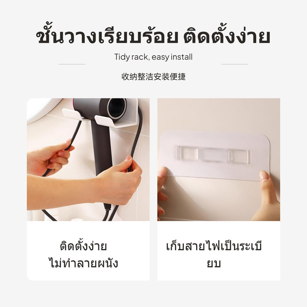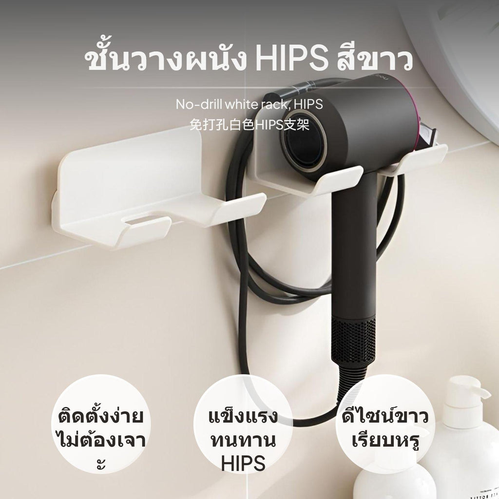 【Efficient Hair Dryer Storage】This wall mounted hair dryer holder offers a simple and stylish solution for organizing your bathroom or washroom, keeping your countertop tidy and clutterclear.【No-Drill Installation & Strong Adhesion】Features a no-drill sticky design that securely attaches to flat walls without damaging surfaces, supporting up to 2kg for dependable use.【Universal Fit & Anti-Fall Guard】The universal diameter accommodates most hair dryer style s, while the raised guardrail prevents accidental drops for added safety.【sturdy HIPS Material & Easy Cleaning】Made from sturdy HIPS plastic, this holder is detachable for easy cleaning and enduring durability.【Cord Organizer adaptable Use】Integrated cord wrap keeps power cables neat, suitable for bathrooms, washrooms, or any space needing organized storage.Specification: