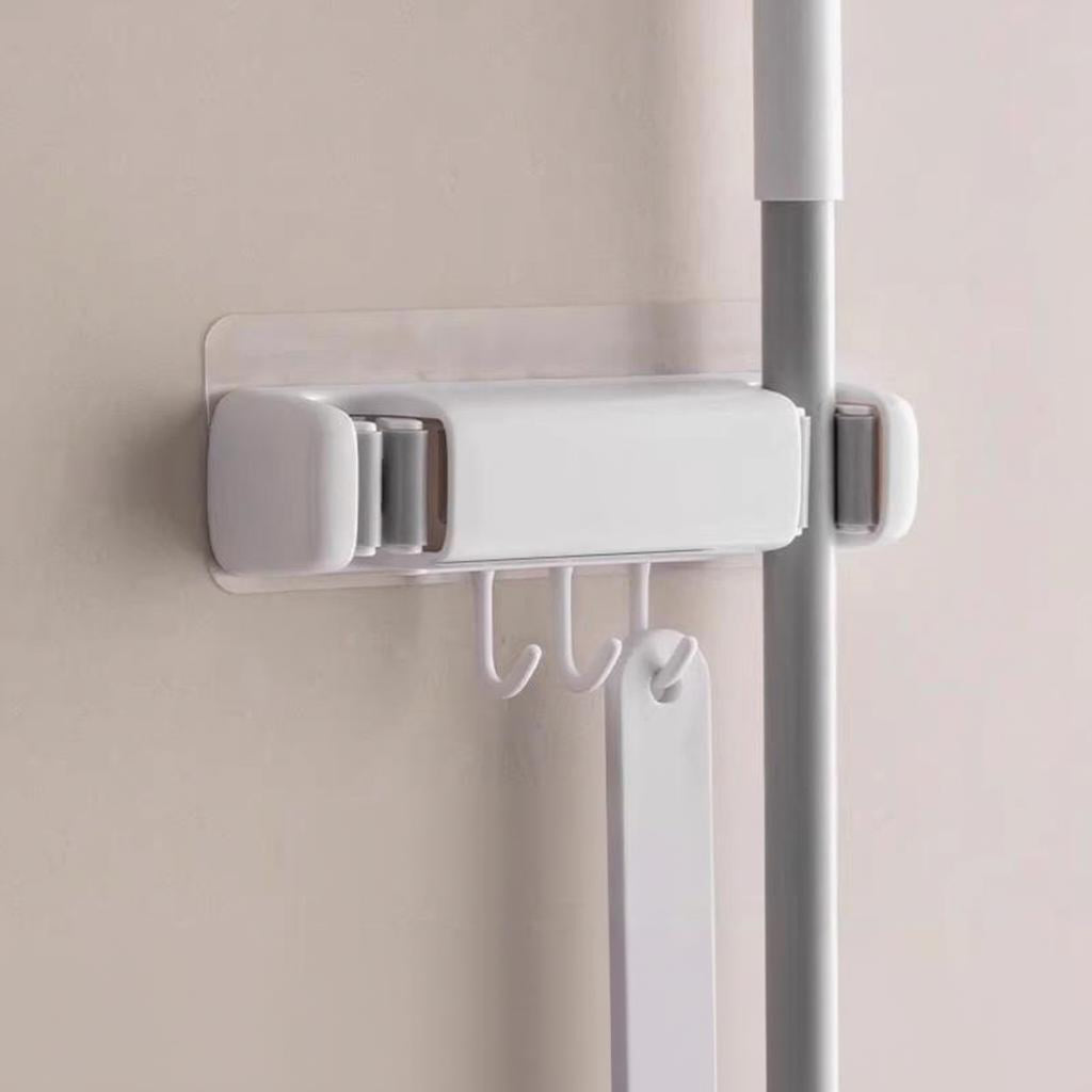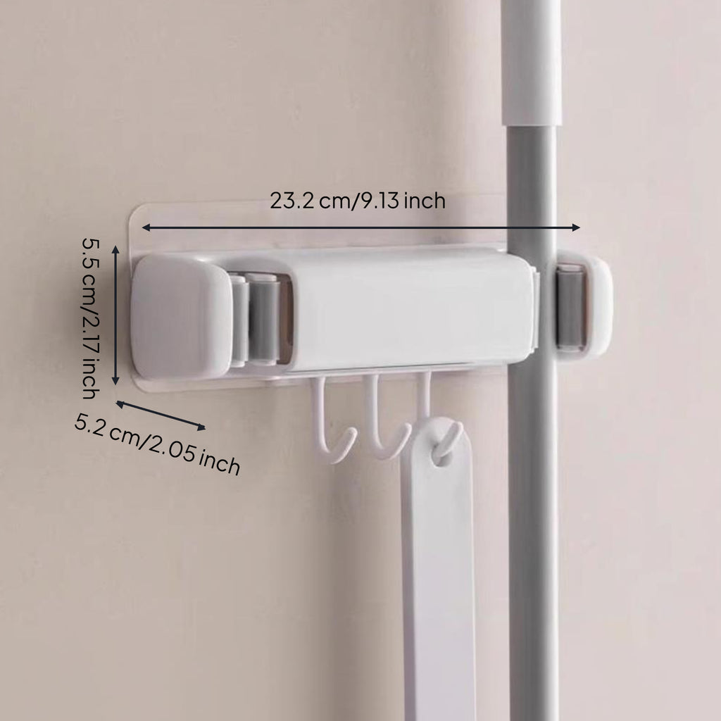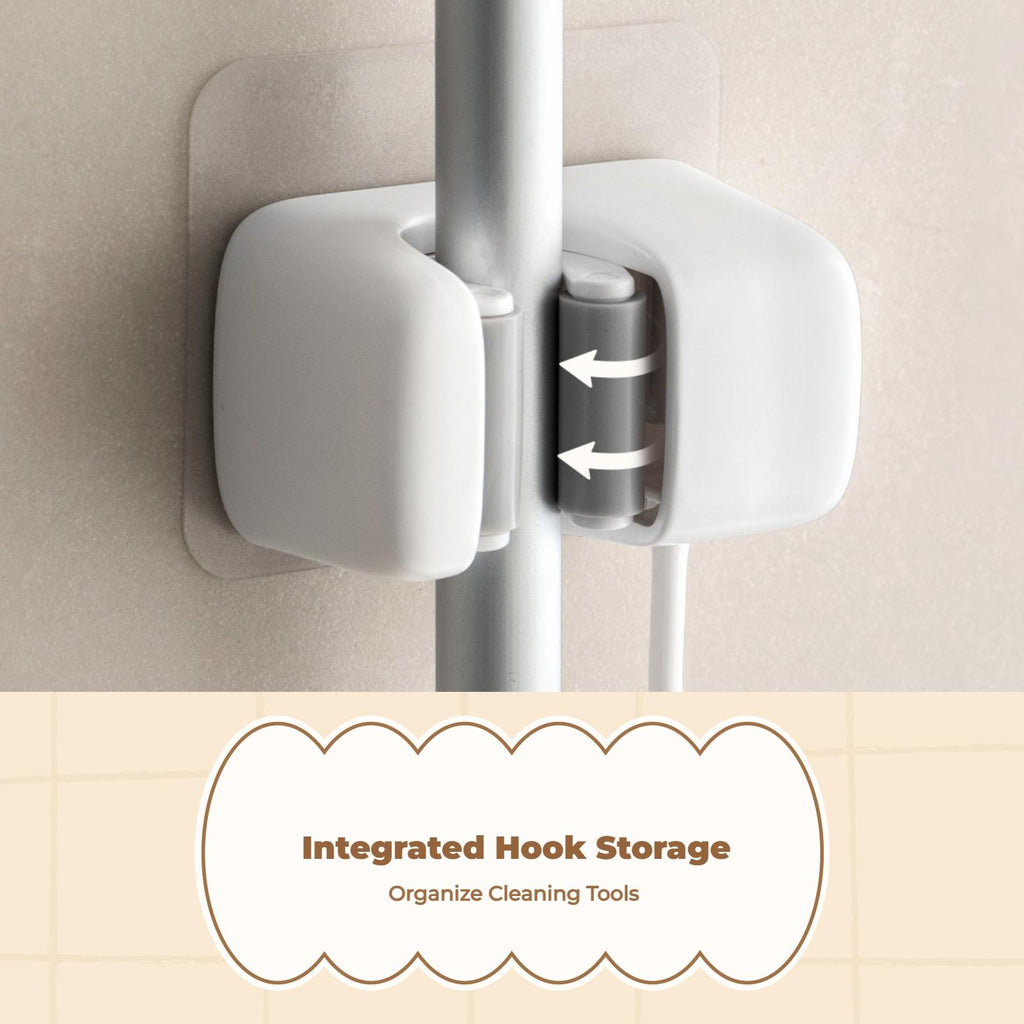 Wall-Mounted Mop Holder, Suction Organizer, Bathroom Cleaning Storage 2 Clip 3 Hooks 1pc