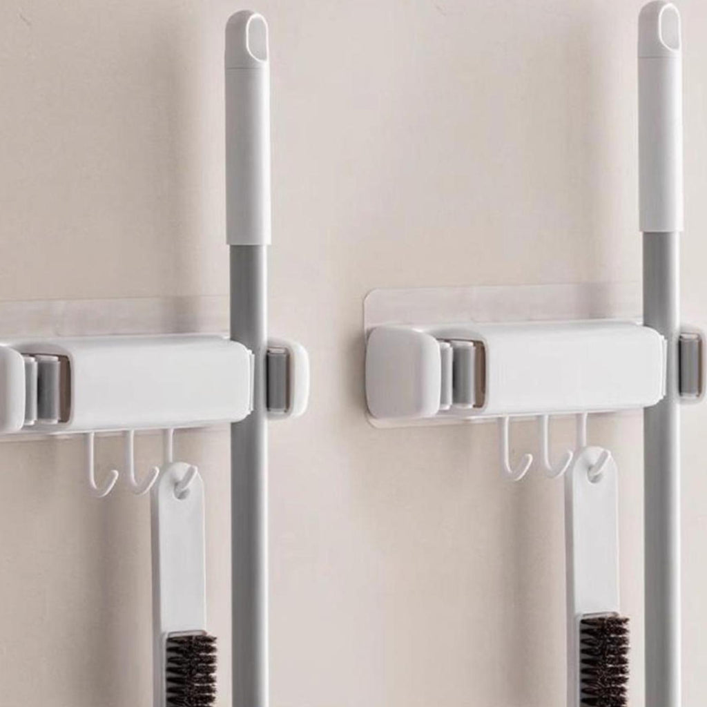 Wall-Mounted Mop Holder, Suction Organizer, Bathroom Cleaning Storage 2 Clip 3 Hooks 2pcs