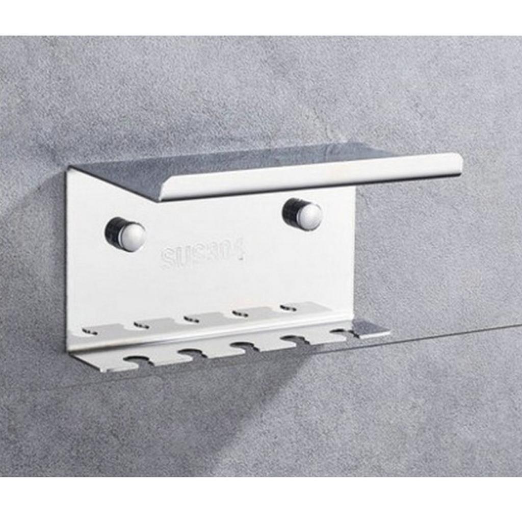Can hold five toothbrushes and your cellphones, toothpaste at the top plate.