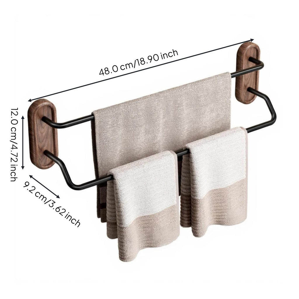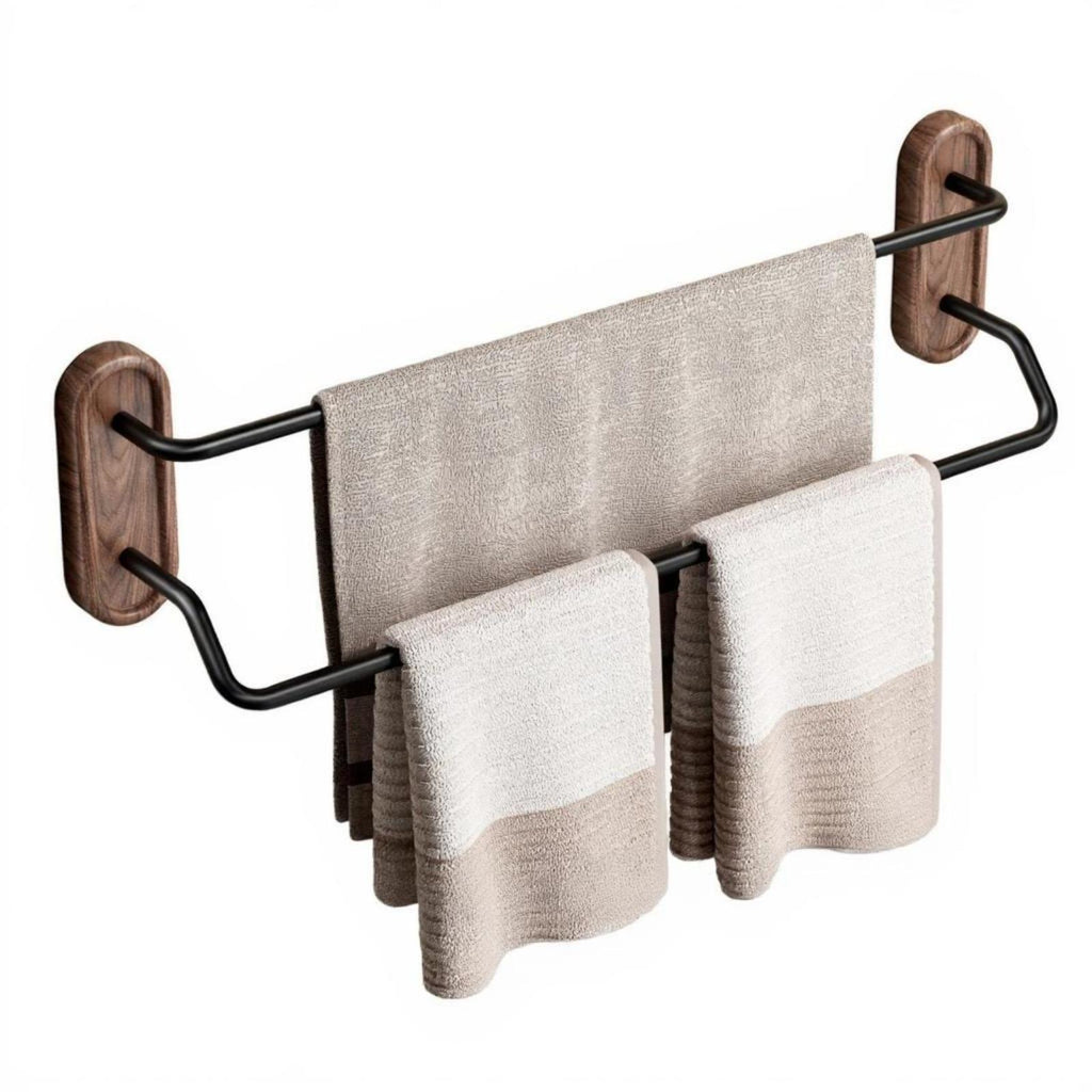 【Sturdy Walnut Wood Towel Rack for Bathroom】This towel rack features high-quality walnut wood and a sleek design, offering both design and functionality for organizing towels in your bathroom, laundry room, or shower area.【No-Drill, Damage Installation】Easy to install with strong this towel holder offers a no-drill setup, keeping your walls unharmed while providing secure support for frequent use.【Space-Saving with Large Capacity】Maximize your space with this multi-purpose storage rack, perfect for neatly organizing towels, bathrobes, and accessories in small bathrooms or laundry rooms.【Rustproof and Easy to Maintain】Made from rust-resistant materials, this towel bar retains its look and durability even in humid environments, making it suitable for long-term use.【Versatile for Multiple Spaces】Perfect for bathrooms, laundry rooms, and washrooms, this organizer blends seamlessly with home decor and improves accessibility for all family members.Specification: