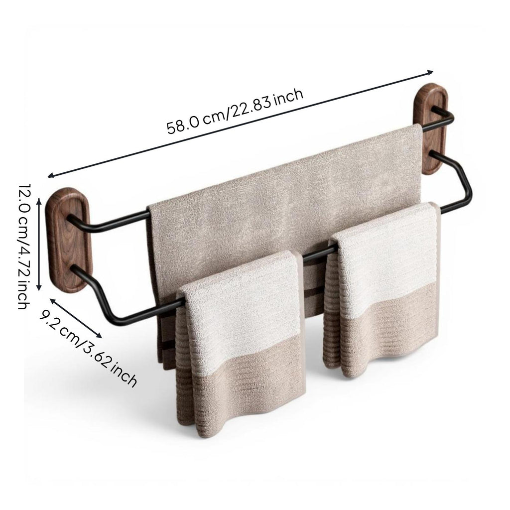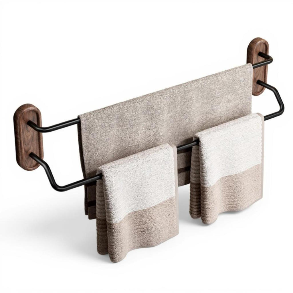 【Sturdy Walnut Wood Towel Rack for Bathroom】This towel rack features high-quality walnut wood and a sleek design, offering both design and functionality for organizing towels in your bathroom, laundry room, or shower area.【No-Drill, Damage Installation】Easy to install with strong this towel holder offers a no-drill setup, keeping your walls unharmed while providing secure support for frequent use.【Space-Saving with Large Capacity】Maximize your space with this multi-purpose storage rack, perfect for neatly organizing towels, bathrobes, and accessories in small bathrooms or laundry rooms.【Rustproof and Easy to Maintain】Made from rust-resistant materials, this towel bar retains its look and durability even in humid environments, making it suitable for long-term use.【Versatile for Multiple Spaces】Perfect for bathrooms, laundry rooms, and washrooms, this organizer blends seamlessly with home decor and improves accessibility for all family members.