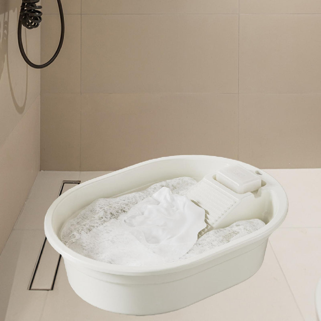 Maxbell Washboard Basin Multifunction Space Saving Washtub for Clothes Bathroom Home White