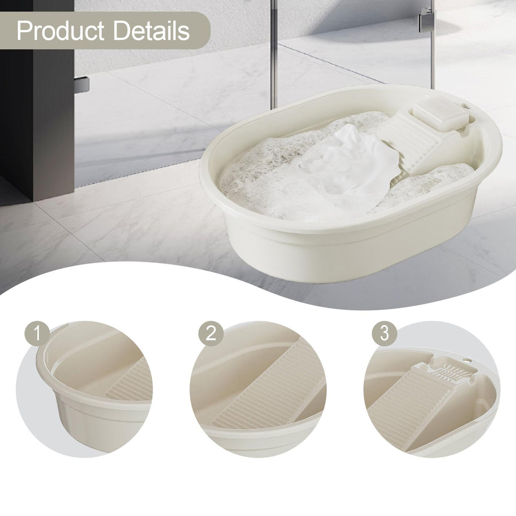 【Reliable and Convenient Design】: Crafted from PP material, this wash basin features an integrated washboard, providing strong load bearing capacity for all your laundry needs