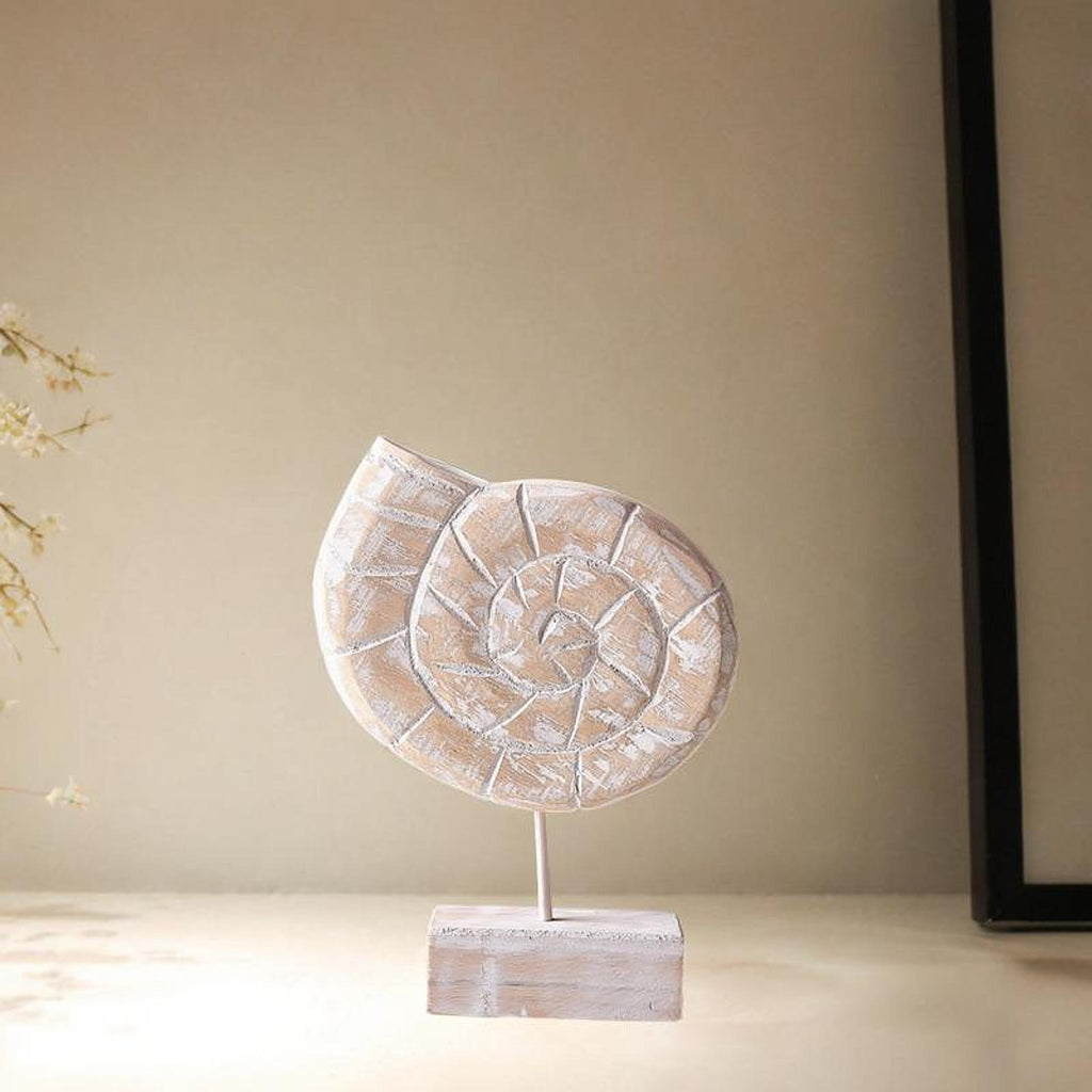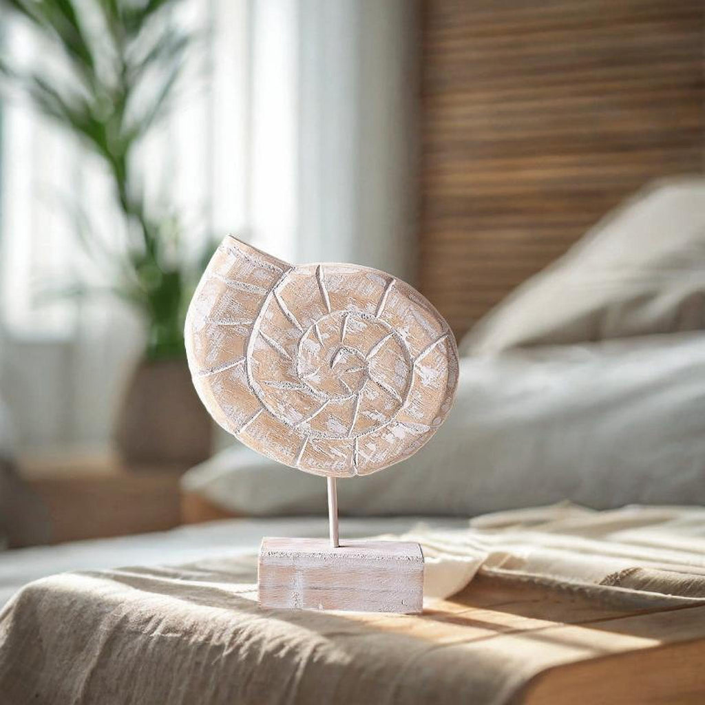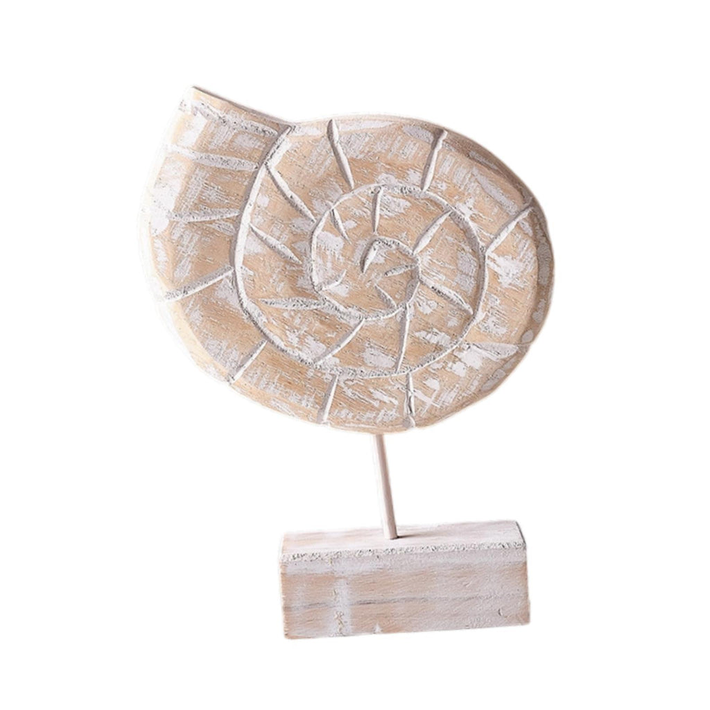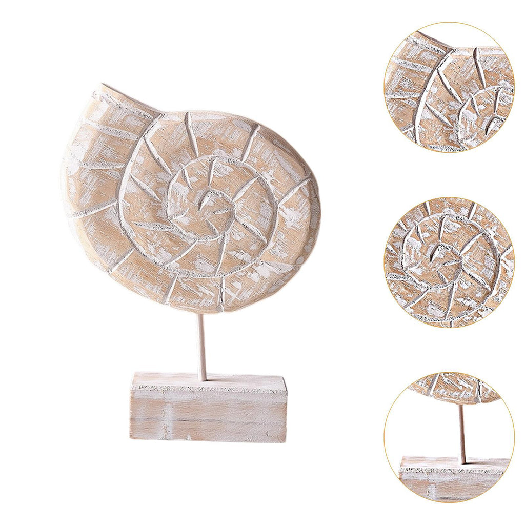 Maxbell Wood Statue Beach Table Decor Art Figurine for Bathroom Beach-farmhouse Home Conch Shape