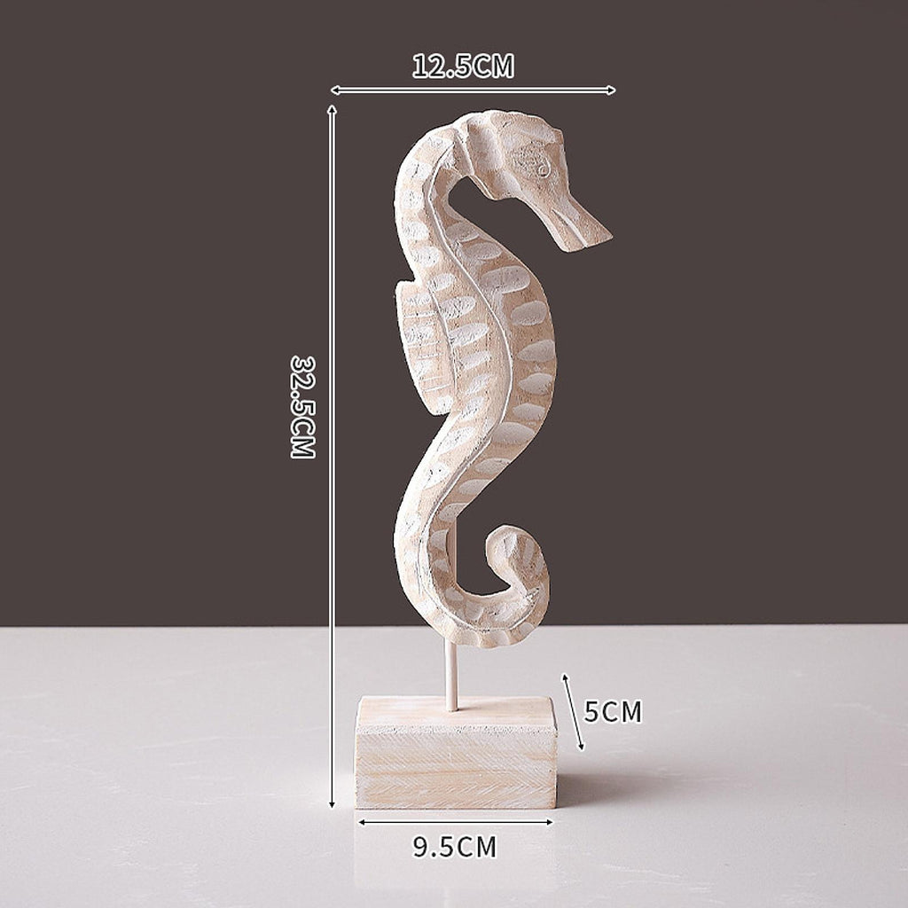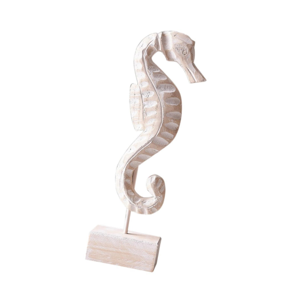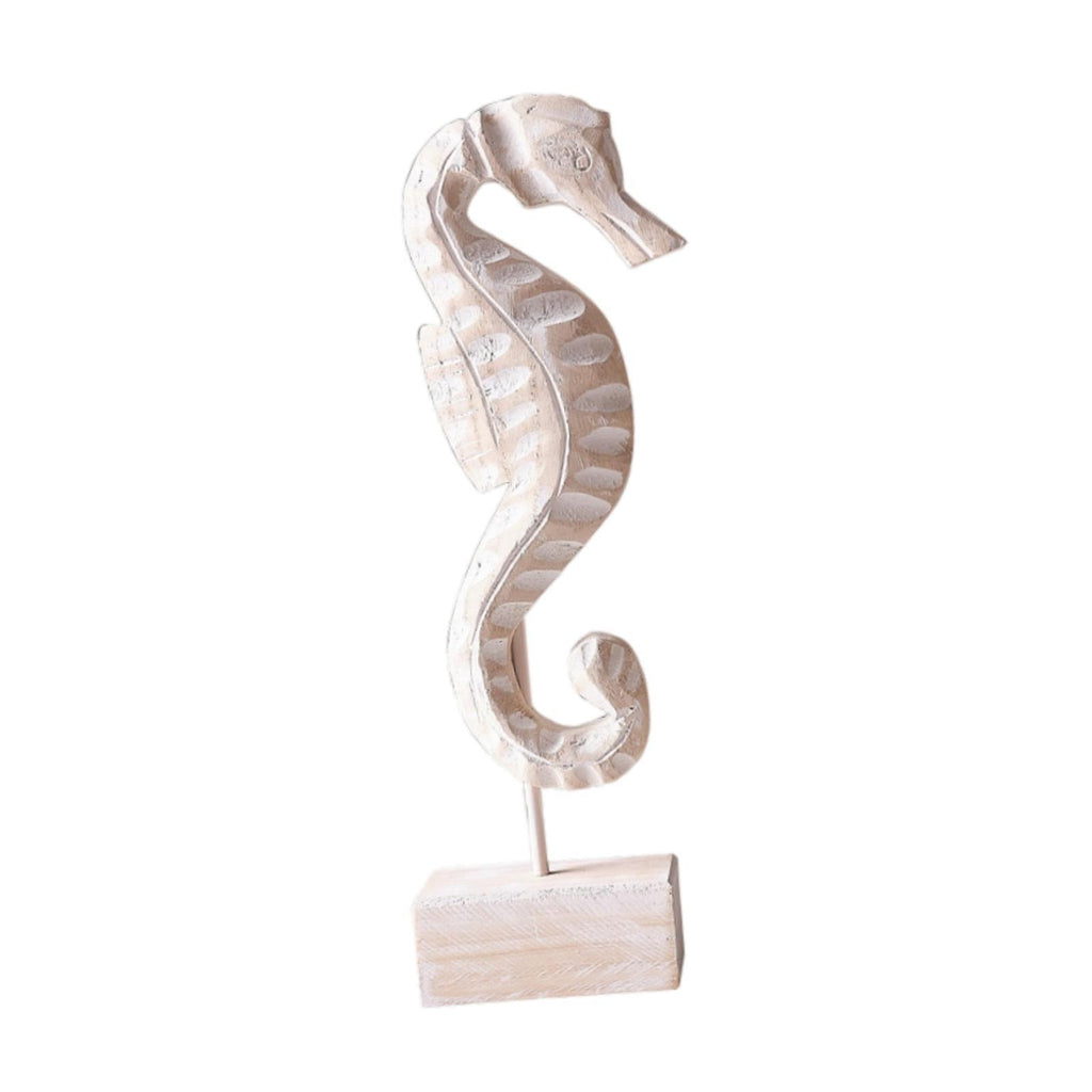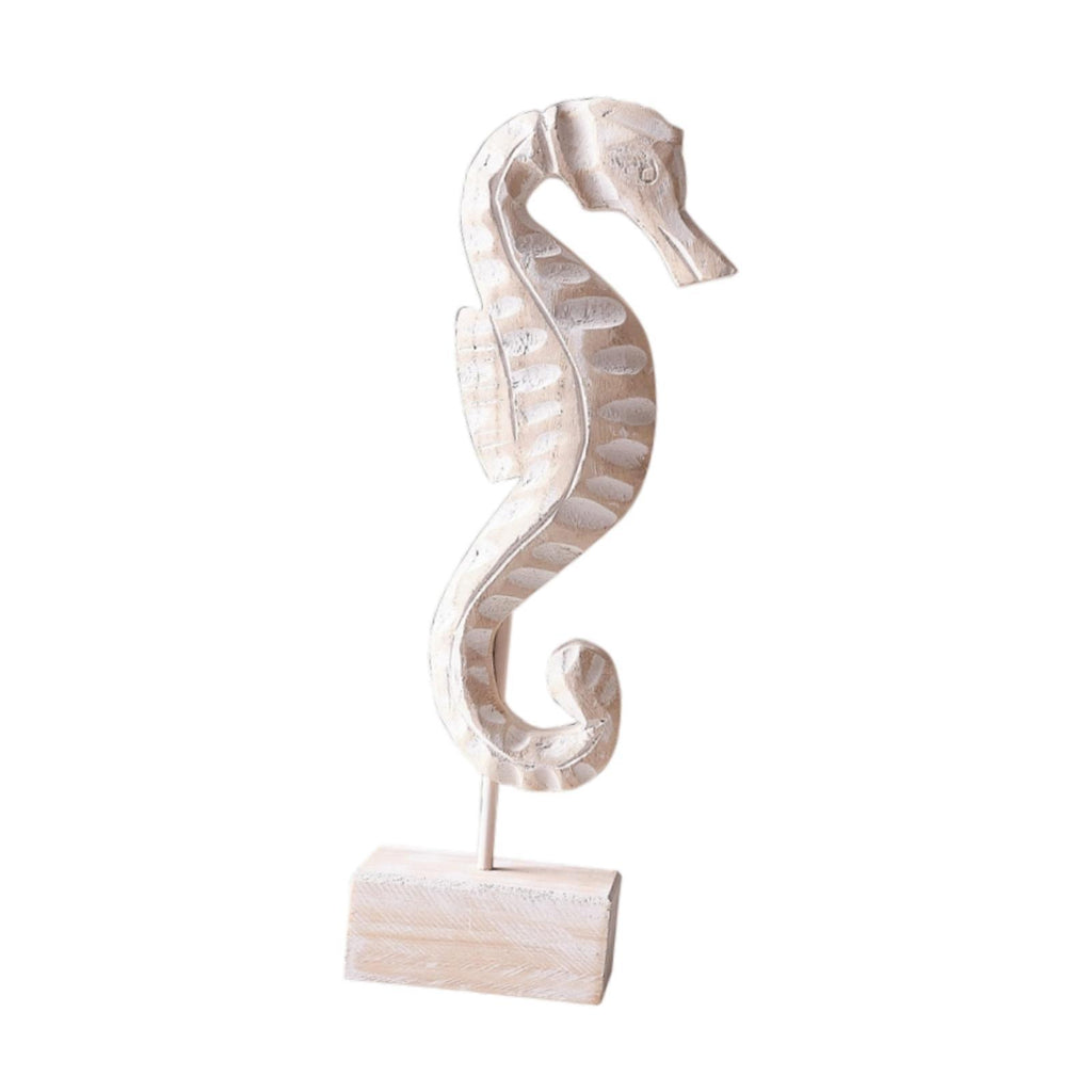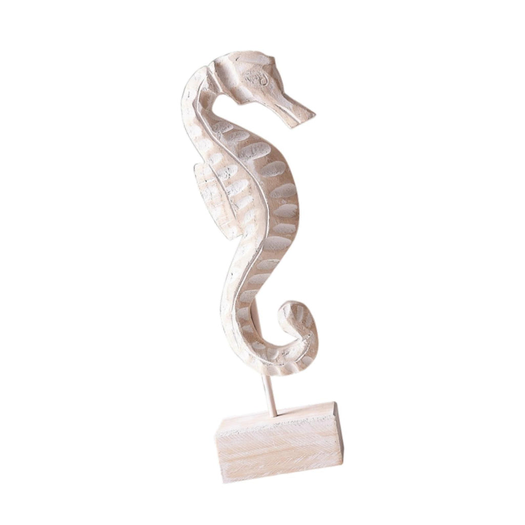 Maxbell Wood Statue Beach Table Decor Art Figurine for Bathroom Beach-farmhouse Home Seahorse Shape