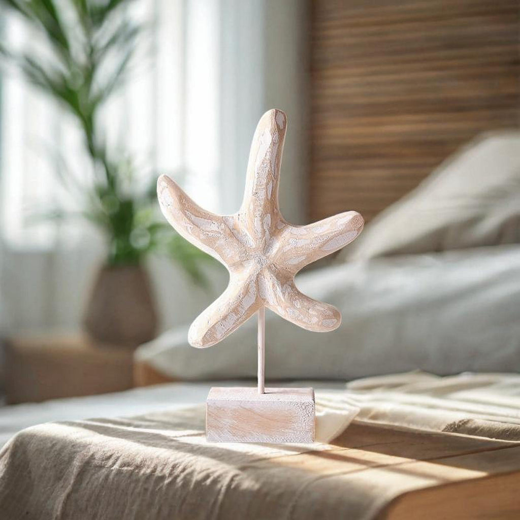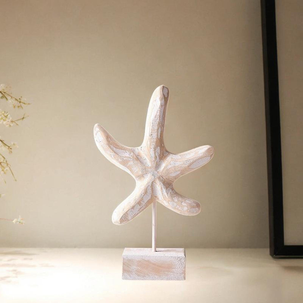 Maxbell Wood Statue Beach Table Decor Art Figurine for Bathroom Beach-farmhouse Home Starfish Shape