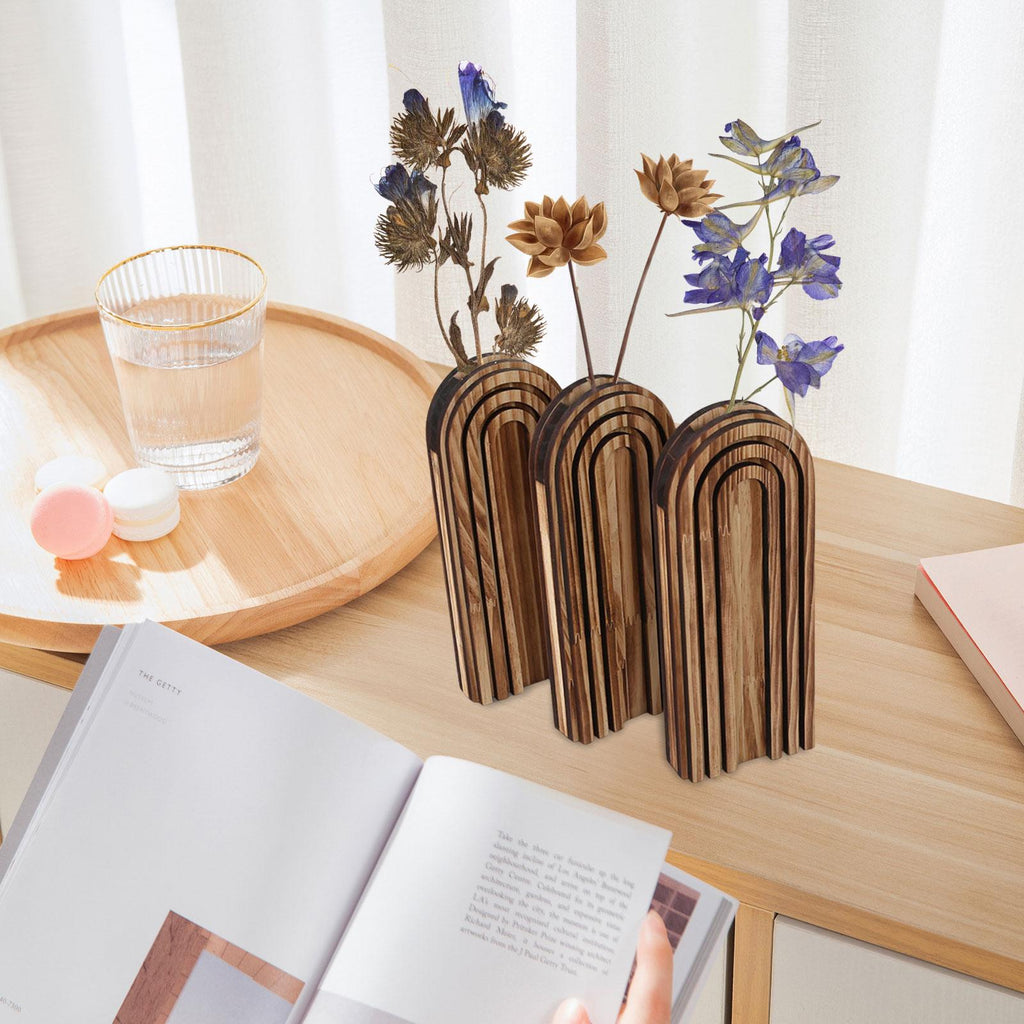 Maxbell Wood Wall Planter Bathroom Wood Vase Wall Decor for Dried Flowers Fake Plant 3 Pack