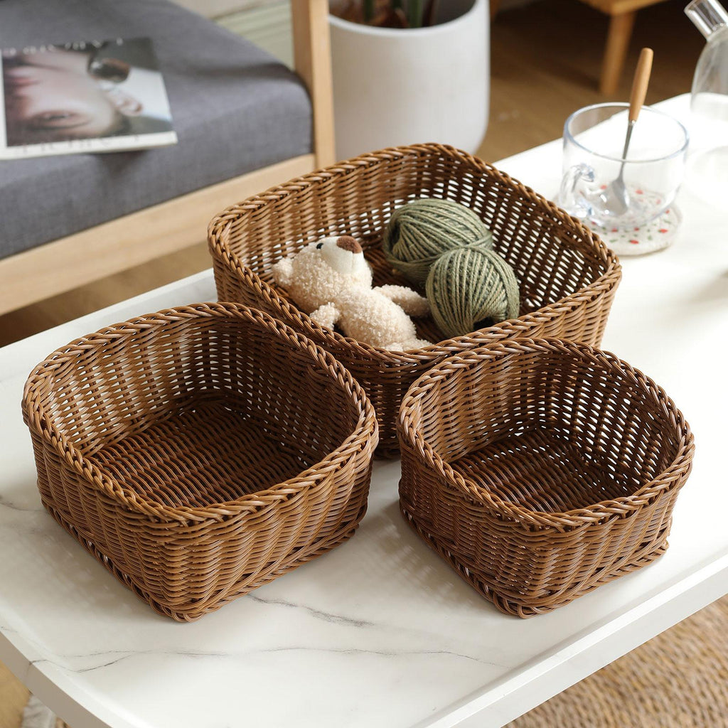 - 【Material】: Made from sturdy Plastic , the woven storage basket is not only stylish but also sturdy and long term use