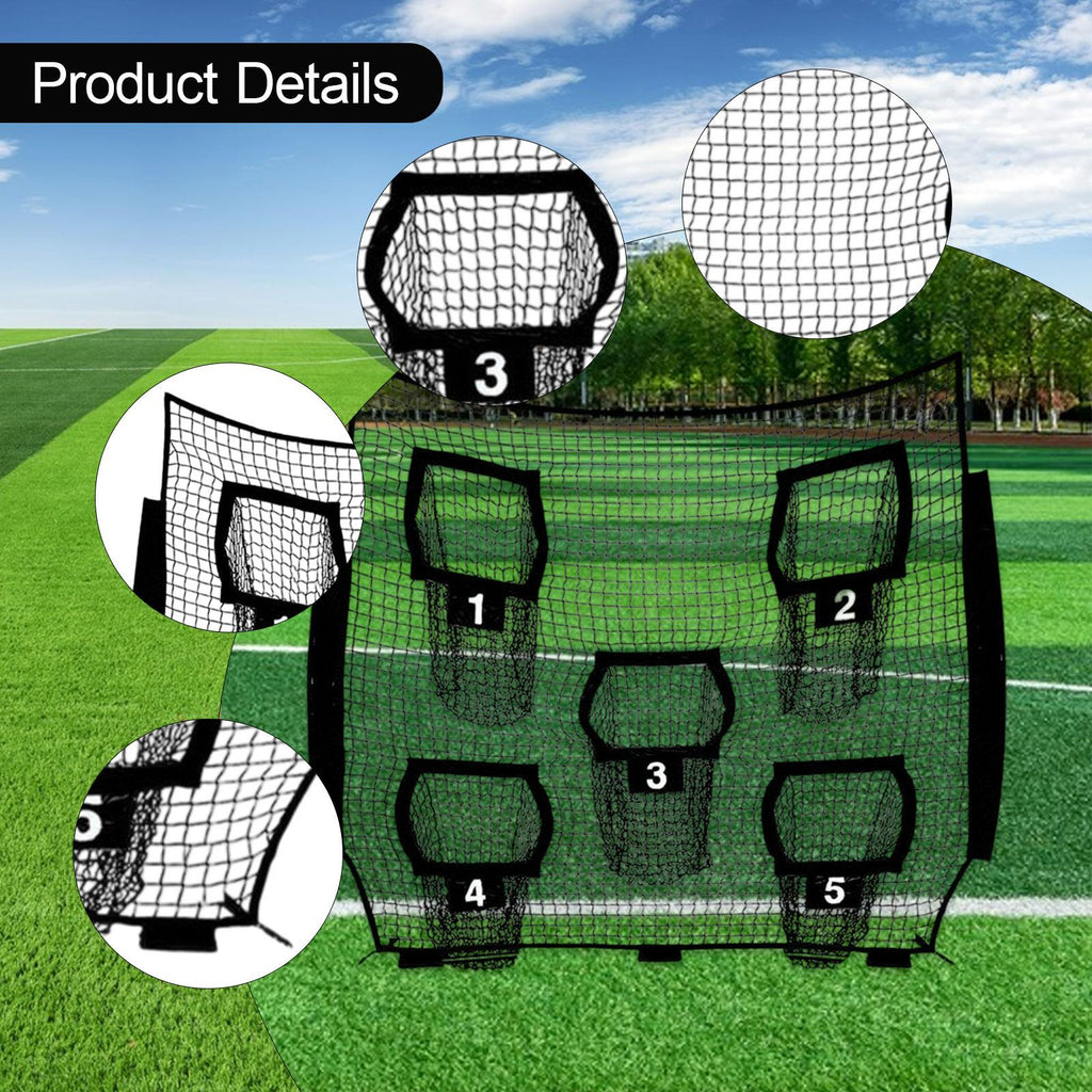 - 【Indoor & Outdoor Use】: This Football Throwing Target Net with 5 target pockets, suitable for both indoor and outdoor use, can be at home, in the yard, or on the sports field. It allows athletes to enhance their skills anywhere anytime