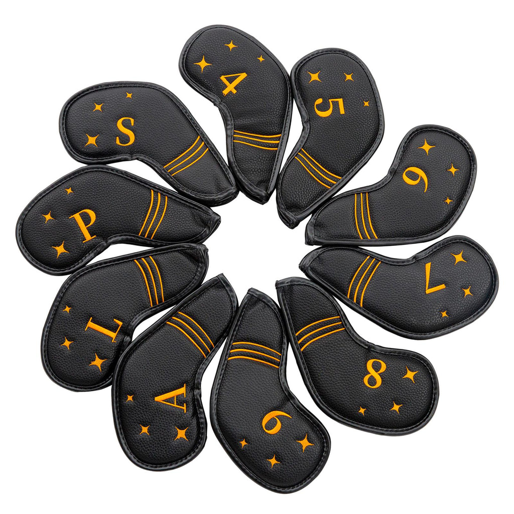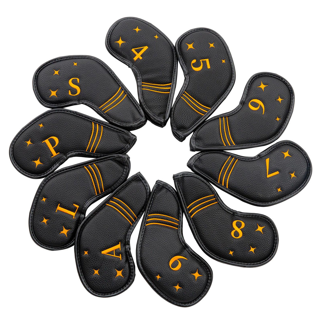 Maxbell 10Pcs Golf Iron Covers Set for Women Men Player Water Resistant Fashion Gift Black