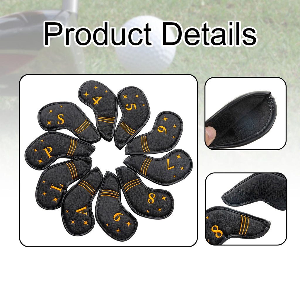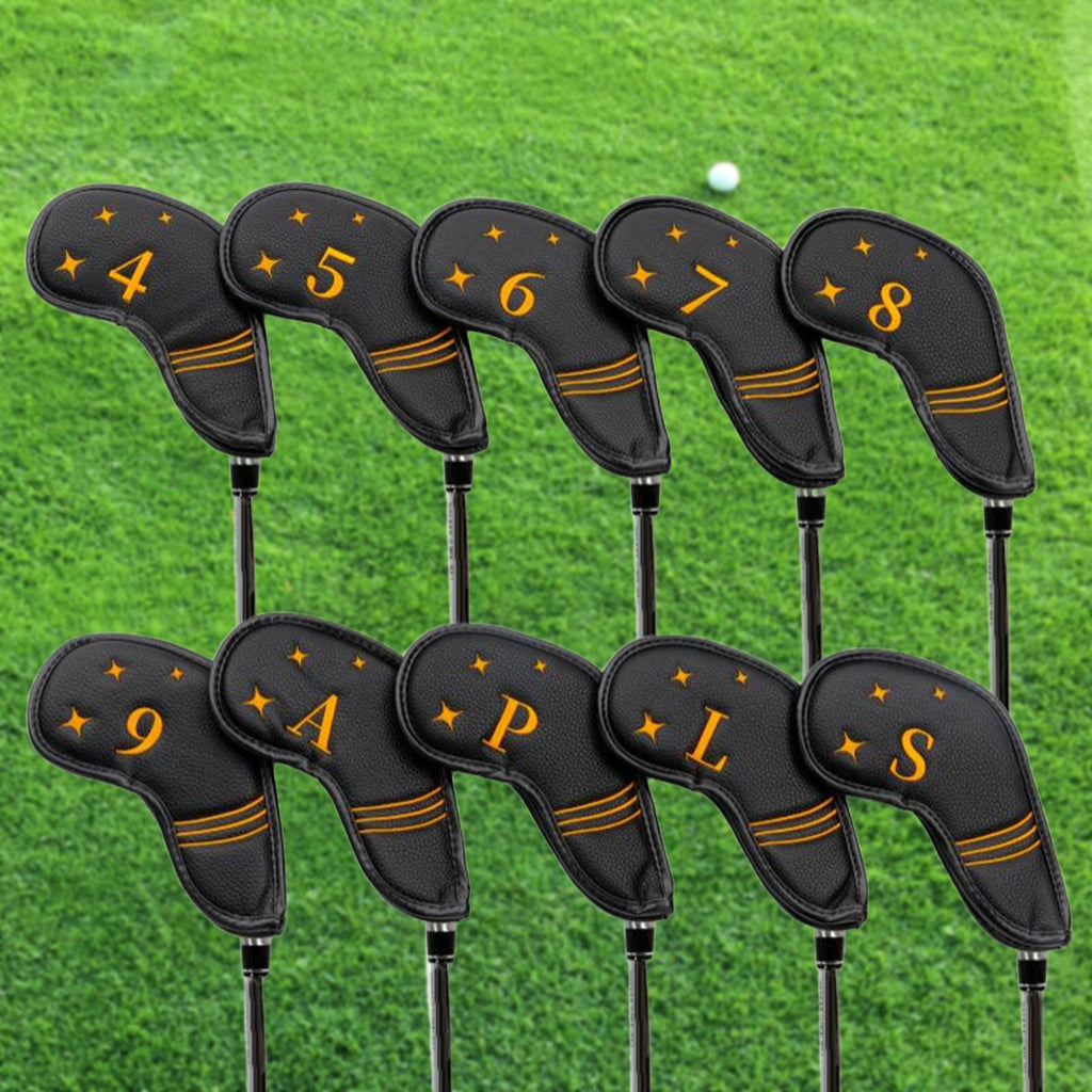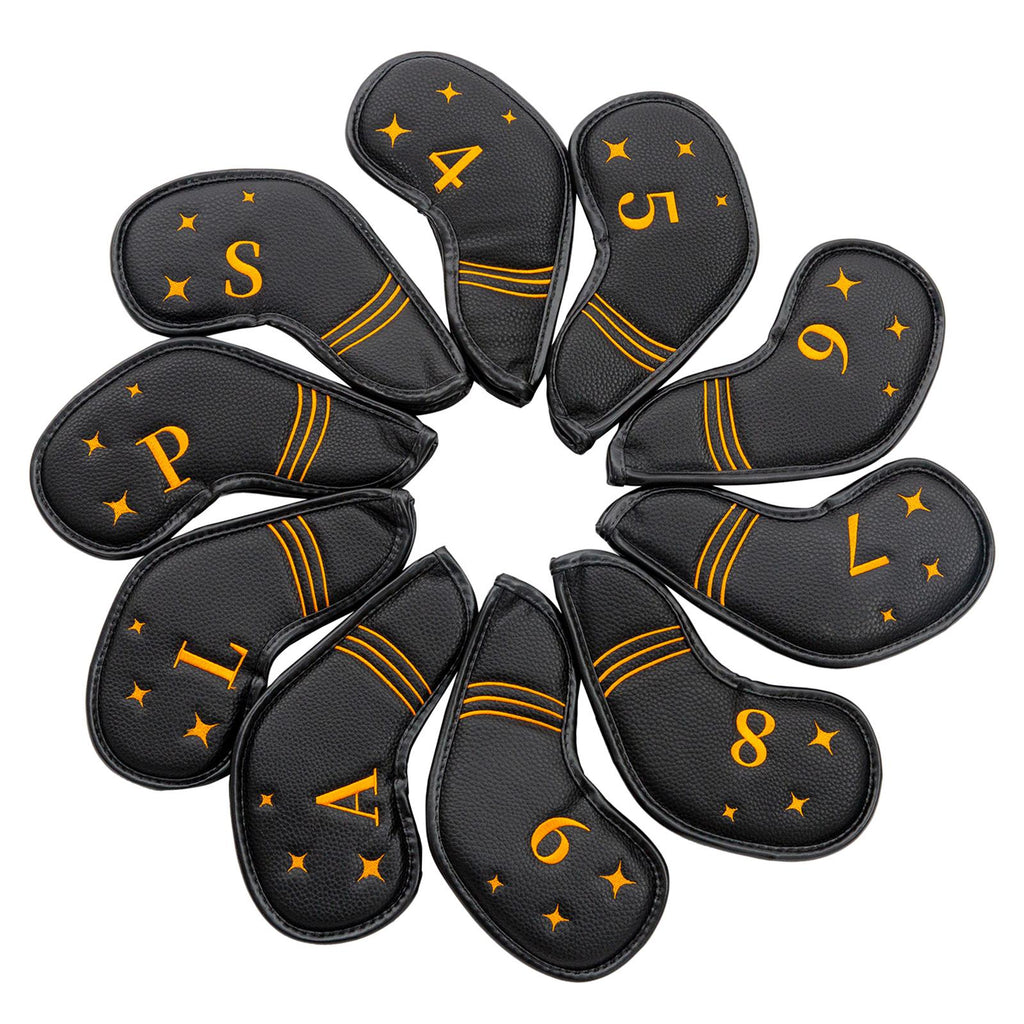 【Suit Size】: 10pcs beautiful and fashionable golf irons headcover head cover protector (4,5,6,7,8,9,L,A,S,P). Fits most standard iron head