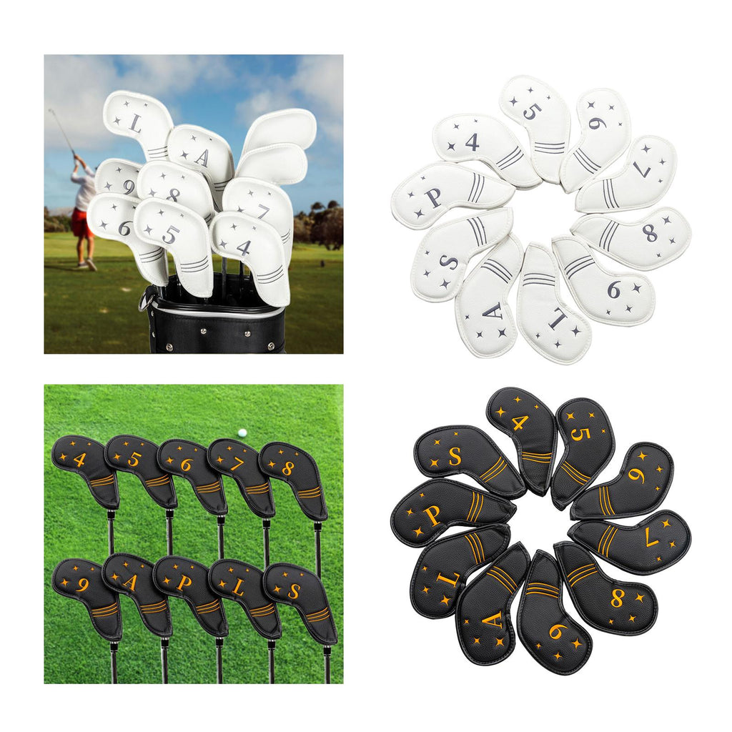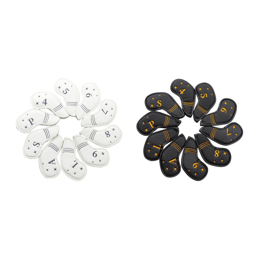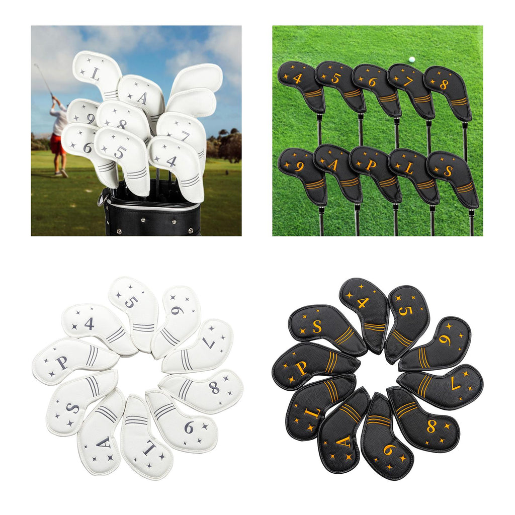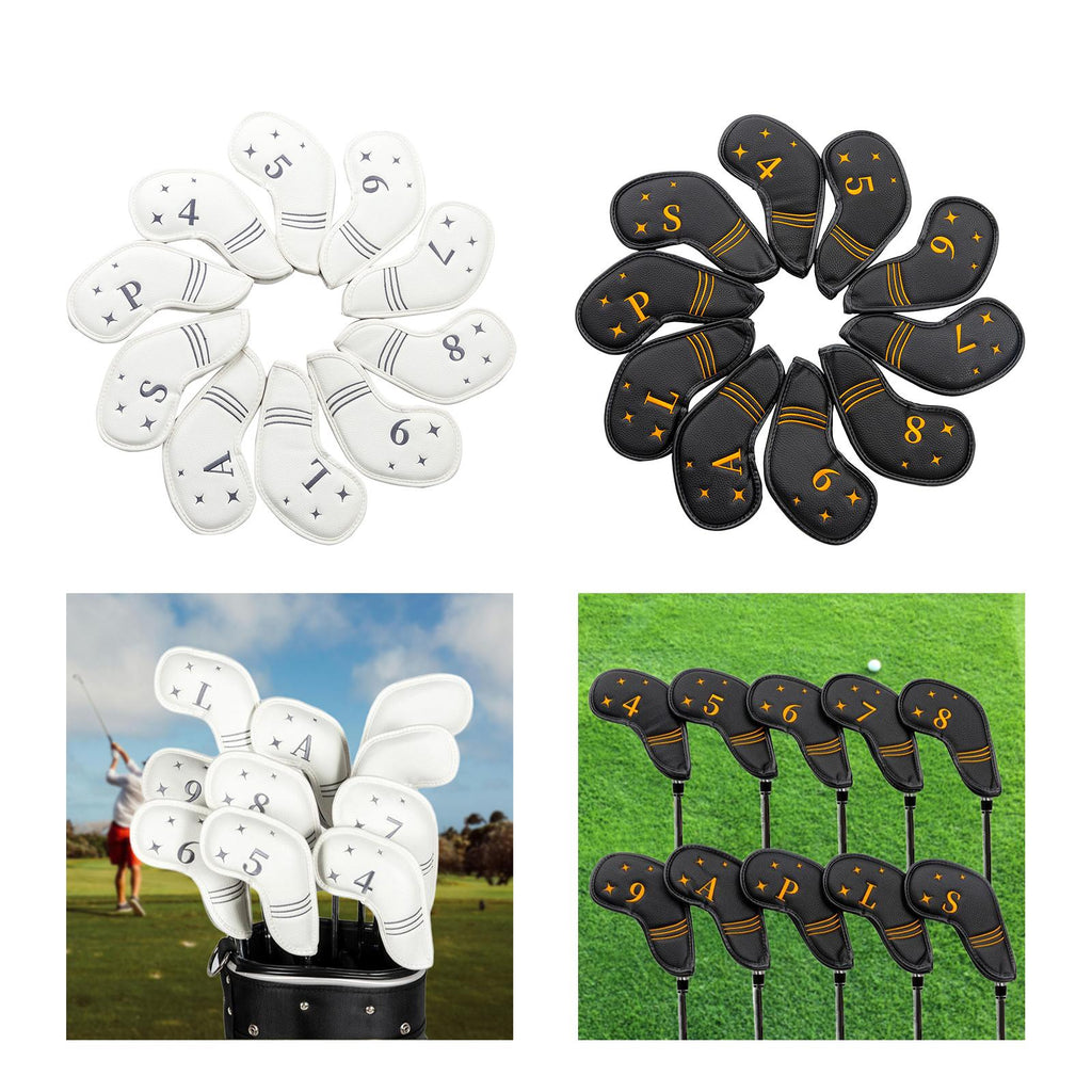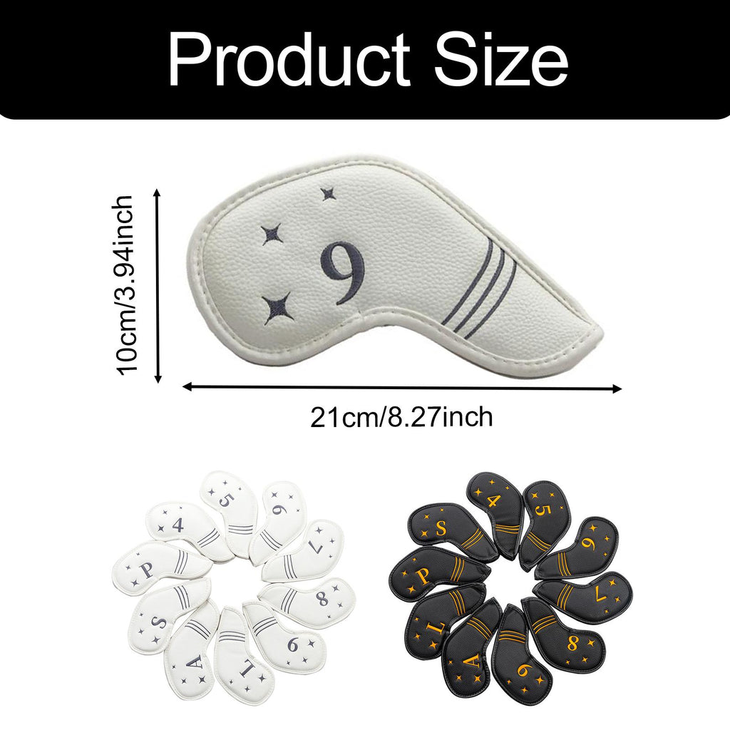 【Suit Size】: 10pcs beautiful and fashionable golf irons headcover head cover protector (4,5,6,7,8,9,L,A,S,P). Fits most standard iron head