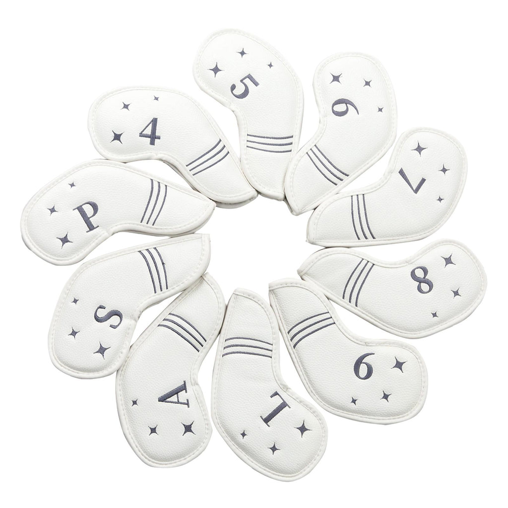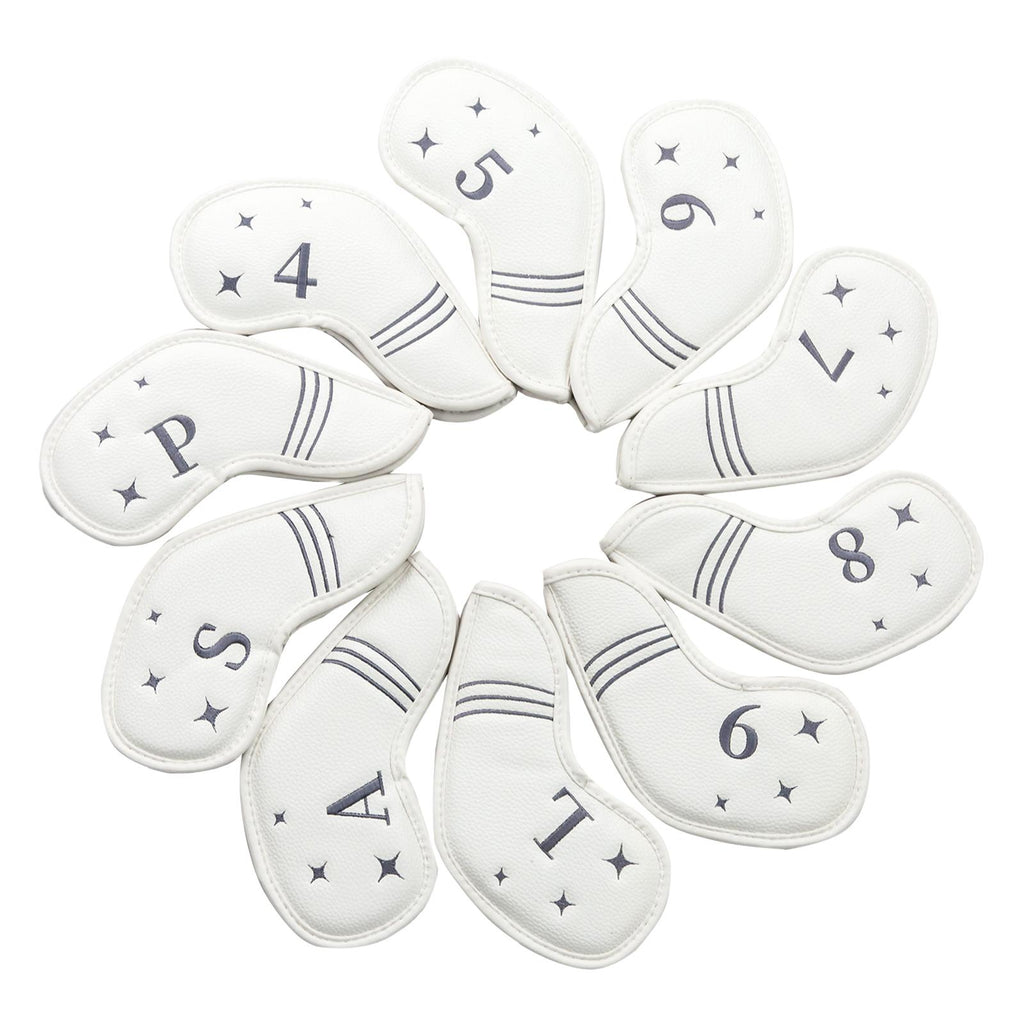 Maxbell 10Pcs Golf Iron Covers Set for Women Men Player Water Resistant Fashion Gift White