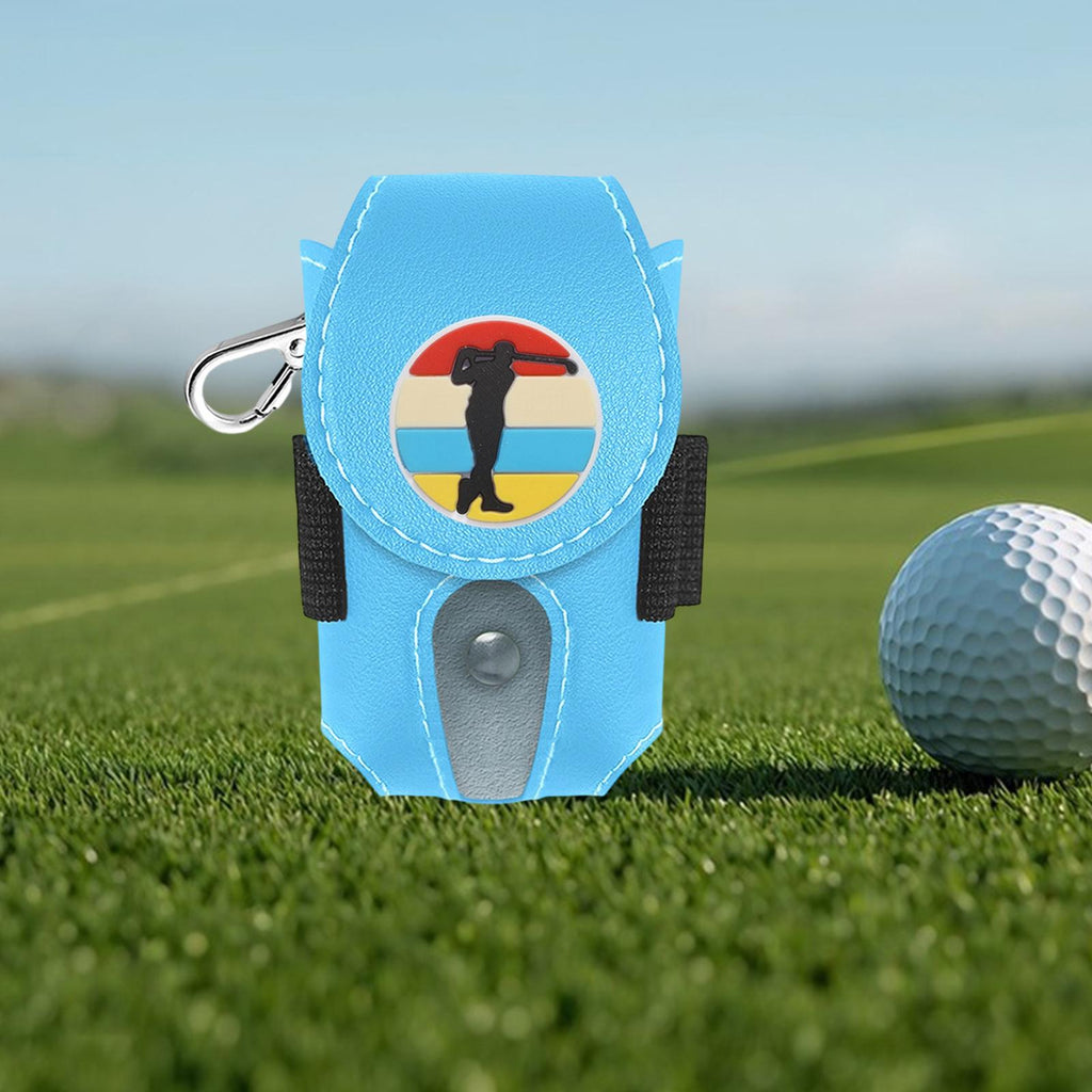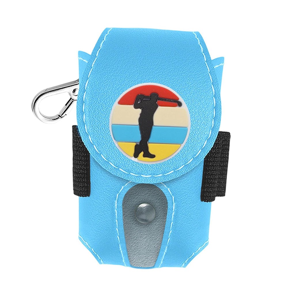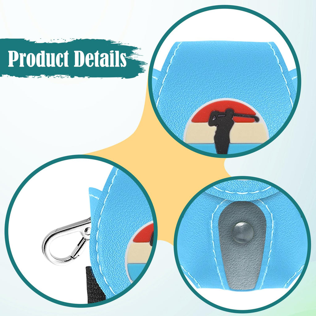 Golf Ball Bag PU Leather Versatile Portable with Buckle and Clip Mini Pocket Blue