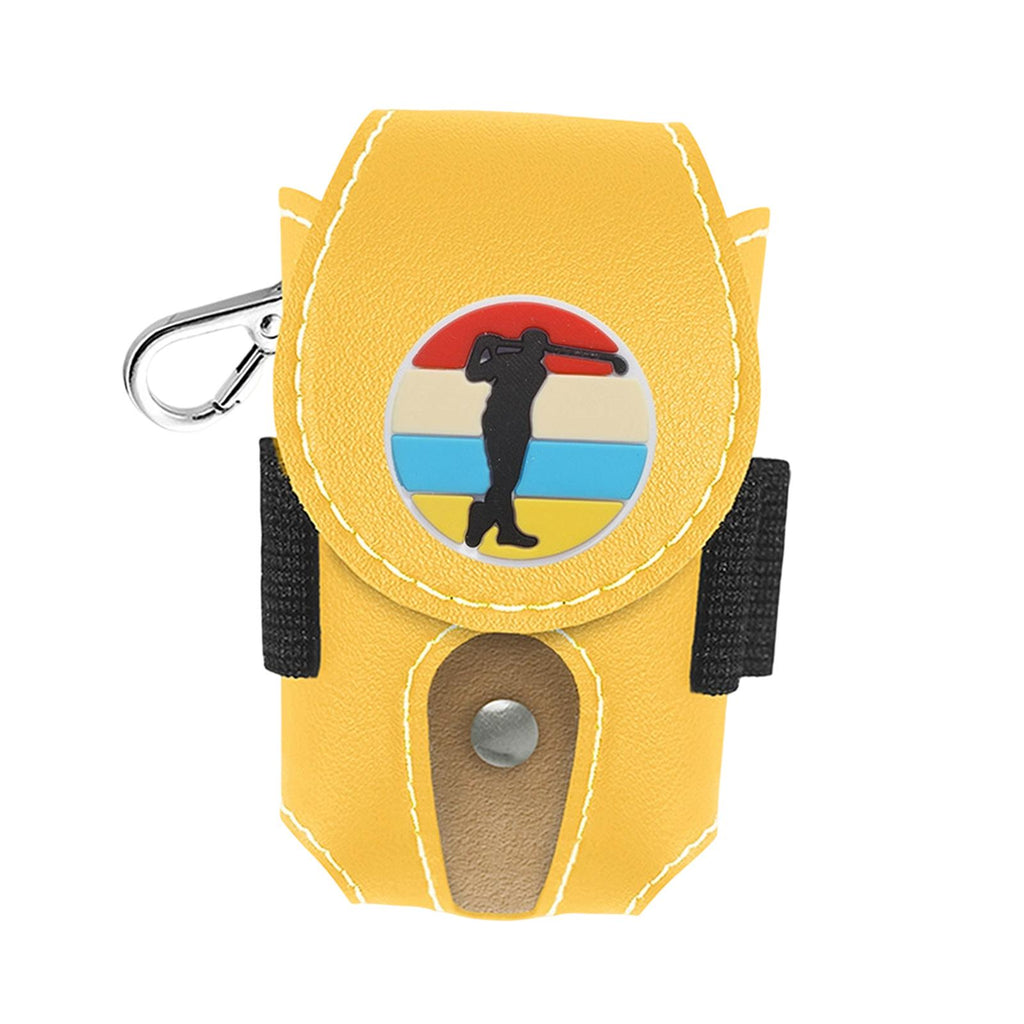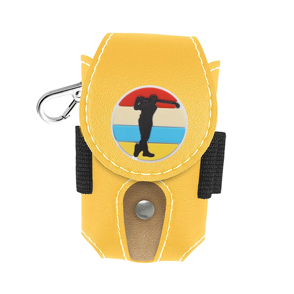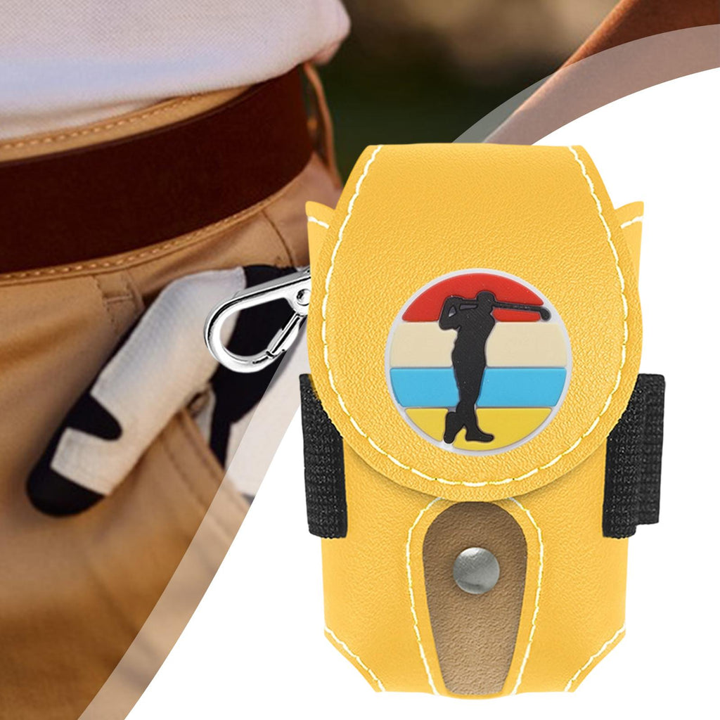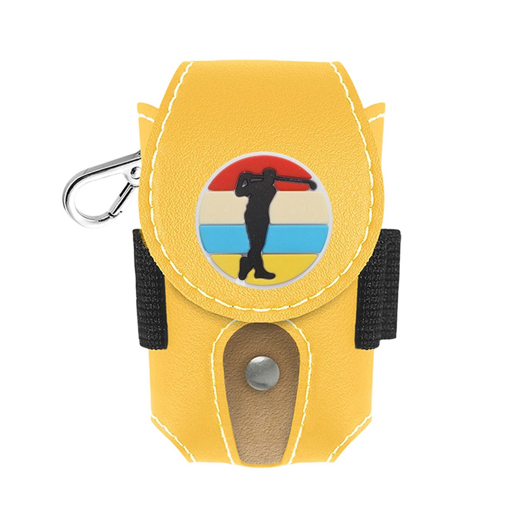 Golf Ball Bag PU Leather Versatile Portable with Buckle and Clip Mini Pocket Yellow