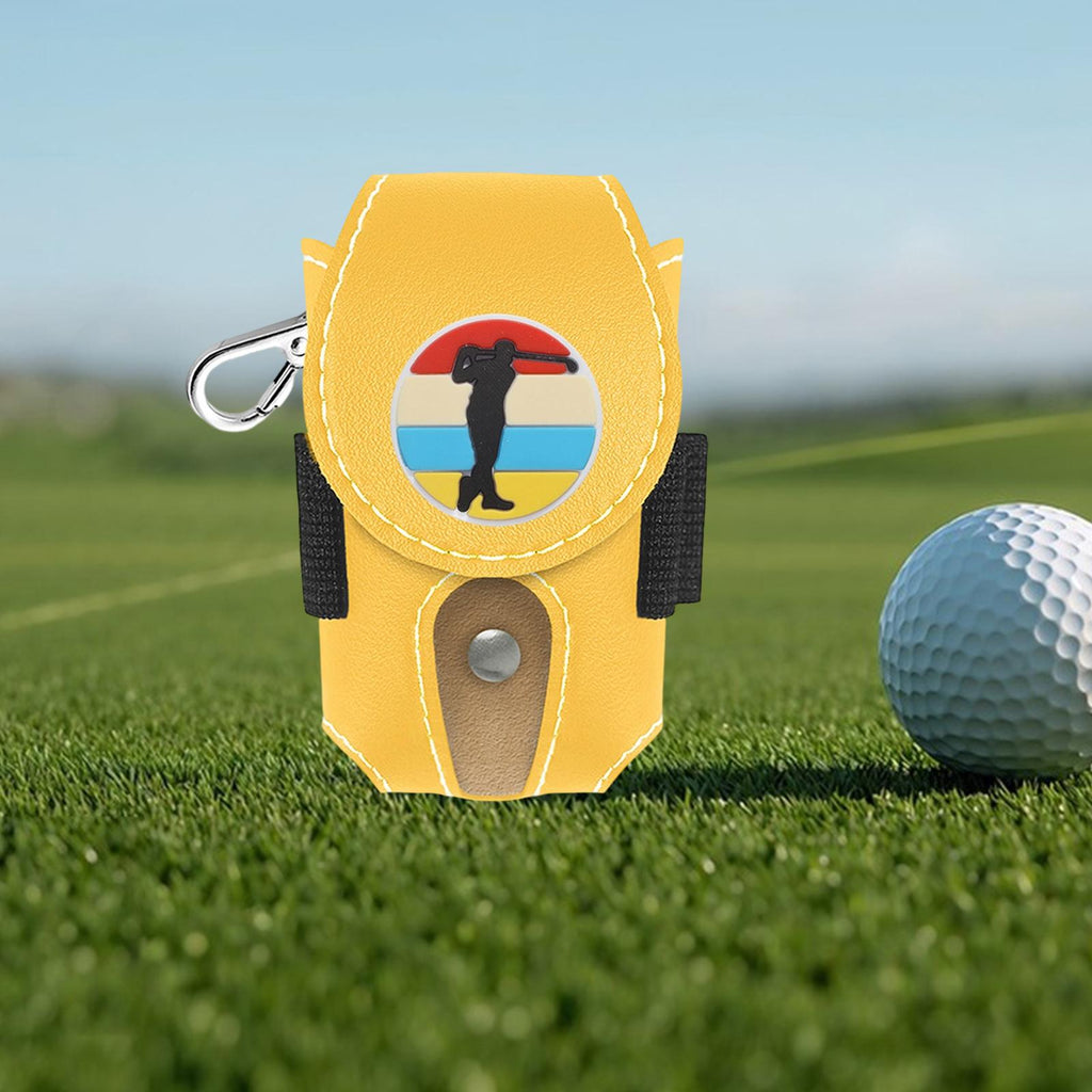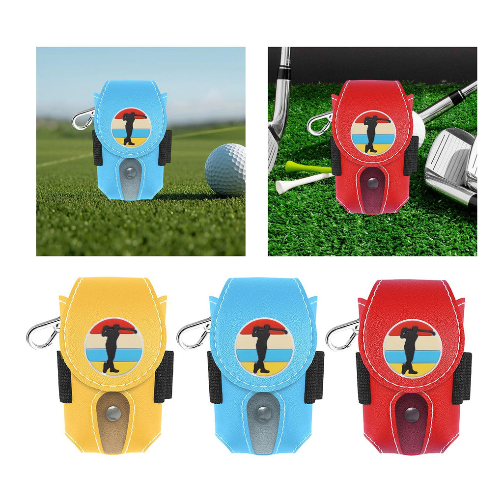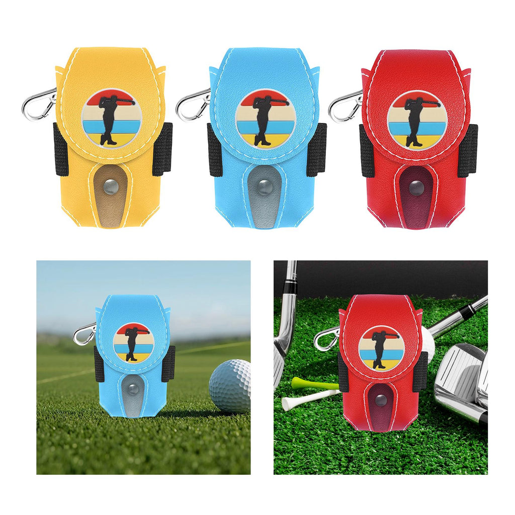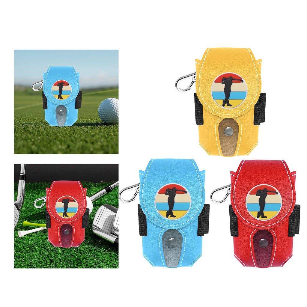 Golf Ball Bag PU Leather Versatile Portable with Buckle and Clip Mini Pocket Yellow