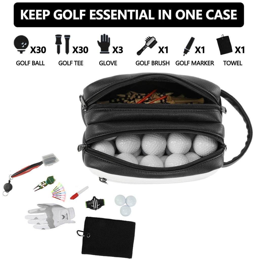 - 【Large Capacity】The Valuables Pouch has two large compartments and internal and external zippered pockets, providing ample storage space for golf balls, tees, and other essentials.