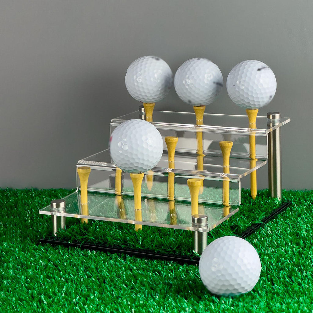 【Material】: Crafted from acrylic, this golf ball display stand offers durability and a sleek, transparent look that elegantly showcases your collection