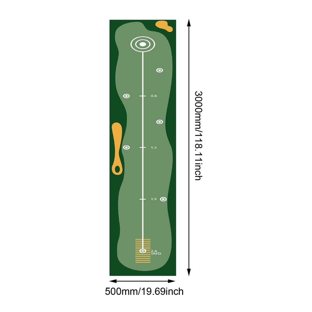 - 【COMPACT SIZE】This golf putting mat size is 300cmx50cm/118.11inchx19.69inch, easily roll or fold for quick easy storage and clean up. Practice anywhere and anytime