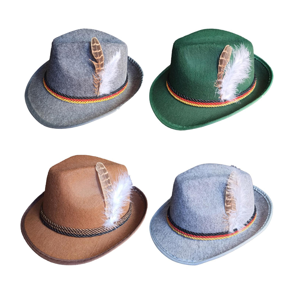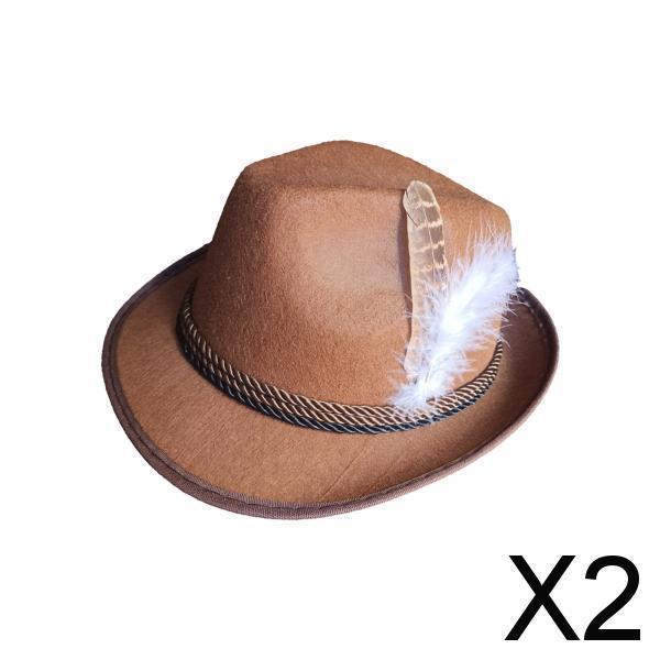 Maxbell 2xMens Fedora Hat Cosplay Casual Fashion Trilby Hat Feather Decorated Jazz Hat Brown