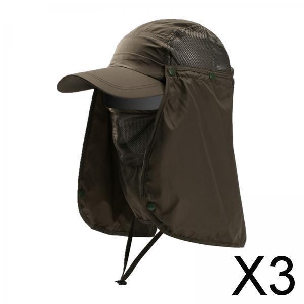 Maxbell 3xOutdoor Hiking Hat with Removable Face Neck Flap Cover Breathable for Garden Green