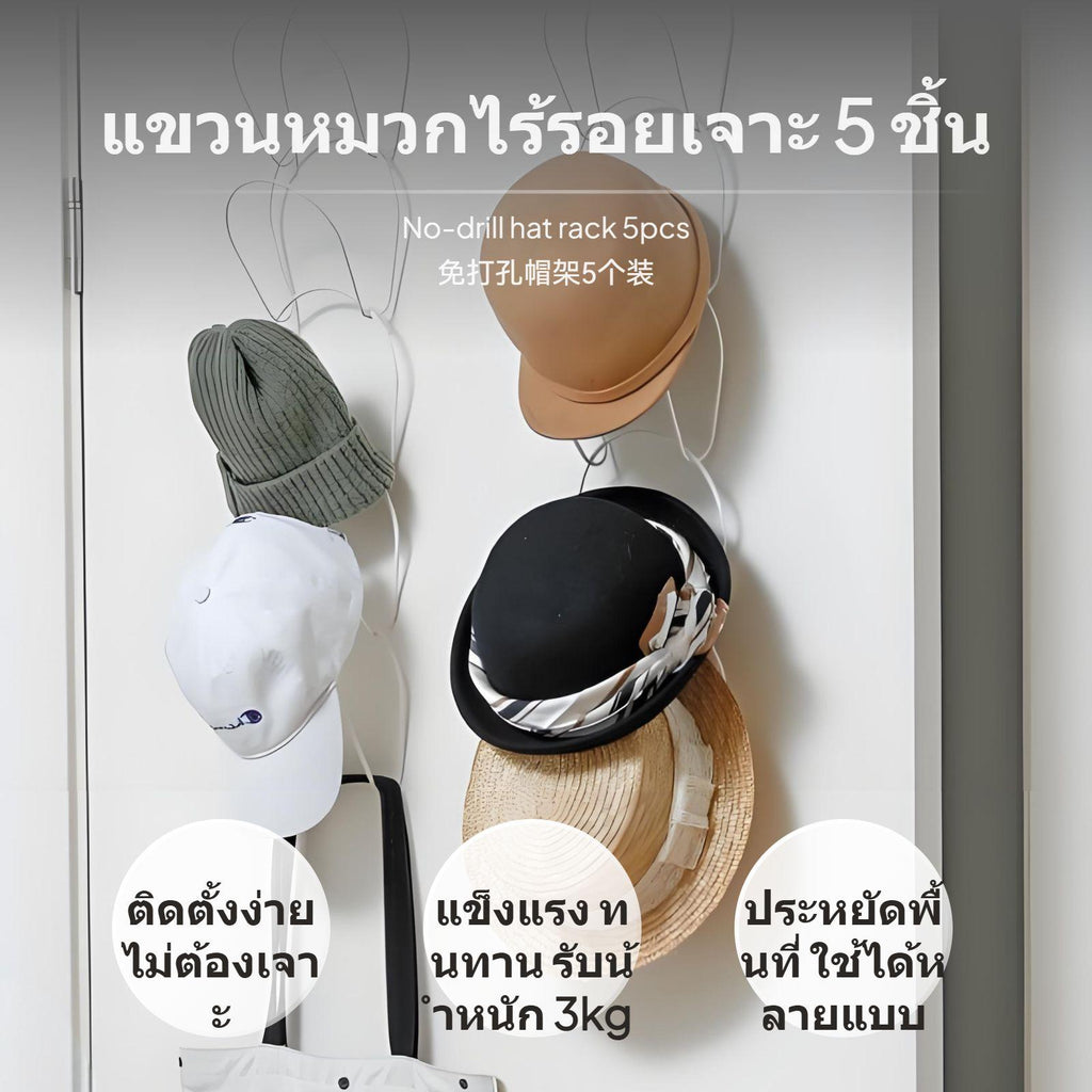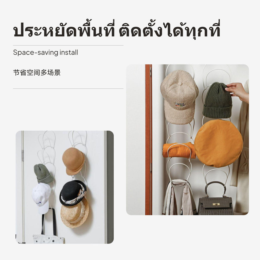 5-Pack Hat Organizer Rack, Iron Wall Mount, No-Drill Door Hook, Japanese design