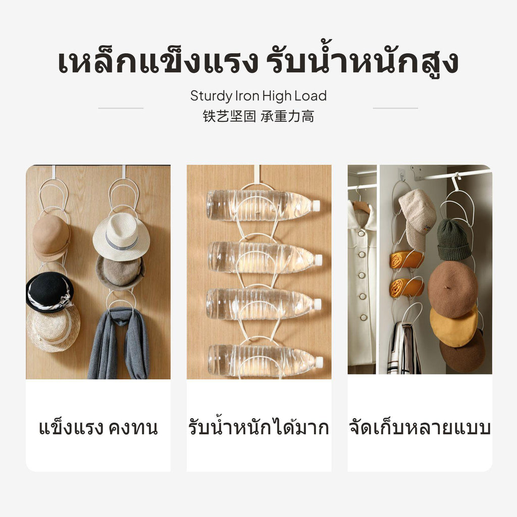 [Space-Optimizing Hat Organizer] 5-Pack iron wall mount racks offer efficient hat, scarf, and bag storage with linked ring design for stable organization.[Flexible Installation Methods] Each unit includes both door holders and sticky pads for no-drill mounting behind doors or on even walls, making setup quick and damageeffortless.[sturdy Iron Construction & Sleek Look] Crafted from thick metal, the minimalist ivory design complements modern apartments and maximizes upright space.[Strong Load Capacity] Each organizer supports up to 3kg, great for hats, handbags, accessories, fitting busy households with restricted space.[Multipurpose for Many Rooms] This Japanese design rack suits bedrooms, closets, entryways, and closet doors—perfect for keeping essentials tidy and accessible.Specification: