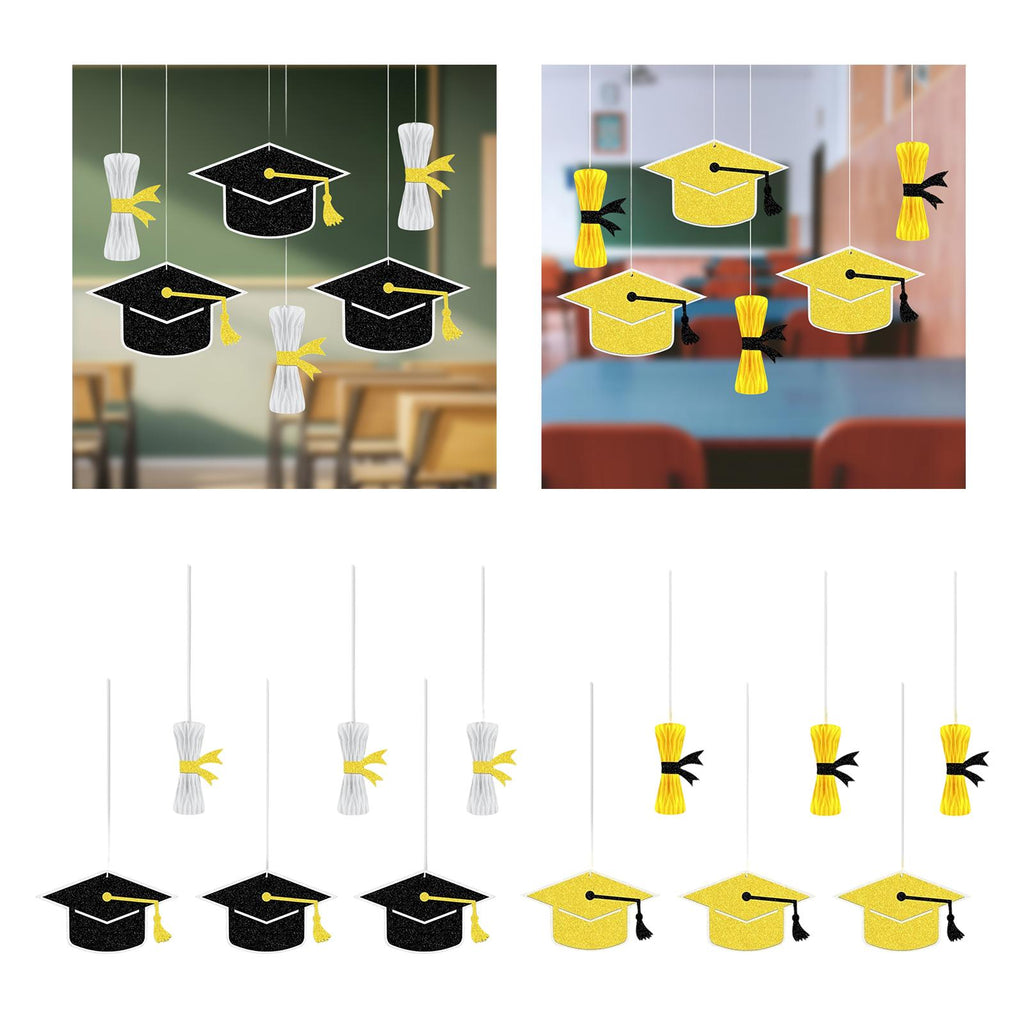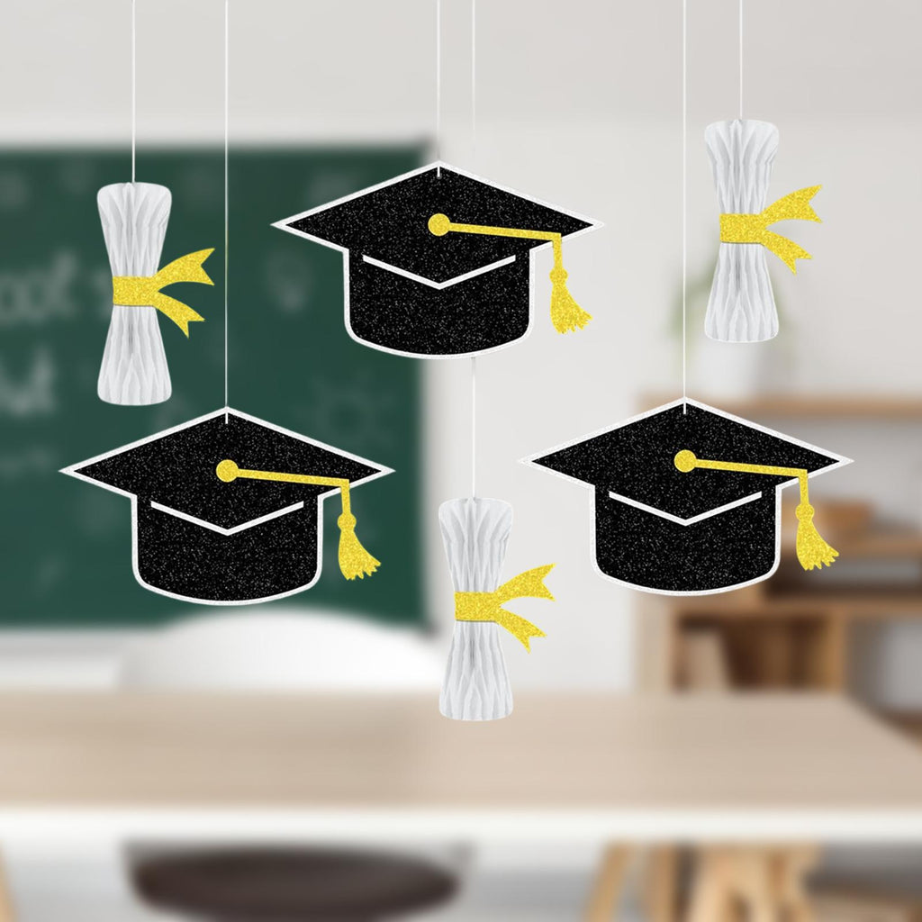 6Pcs Graduation Decorations Graduation Hat Hanging Ornaments for Home School Black