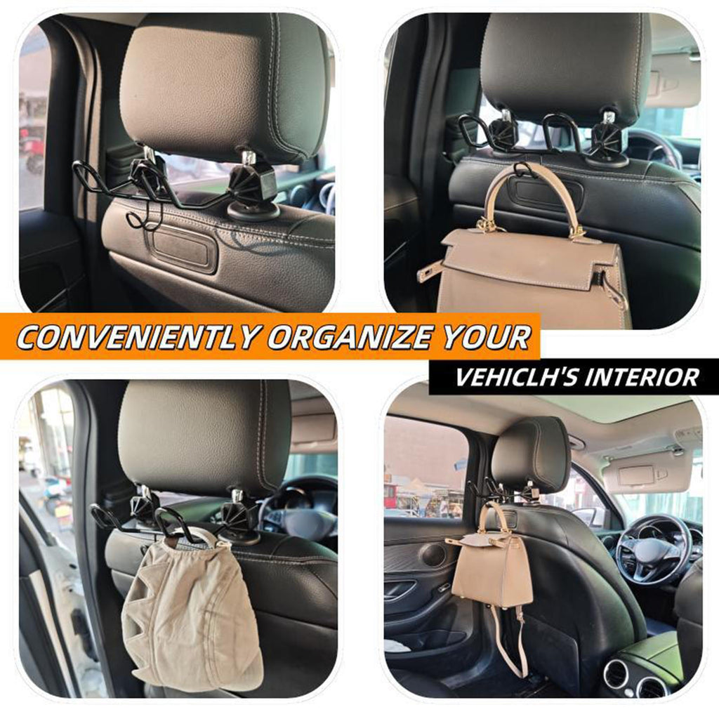- 【 Universal Fit & Effortless Installation】: No tools, no hassle. Simply clip the hook onto your car's headrest posts in seconds. Its universal design is compatible for the majority of cars, SUVs, and trucks, providing an immediate storage solution