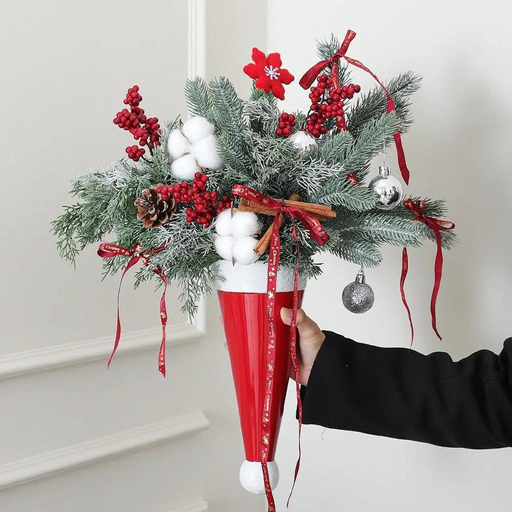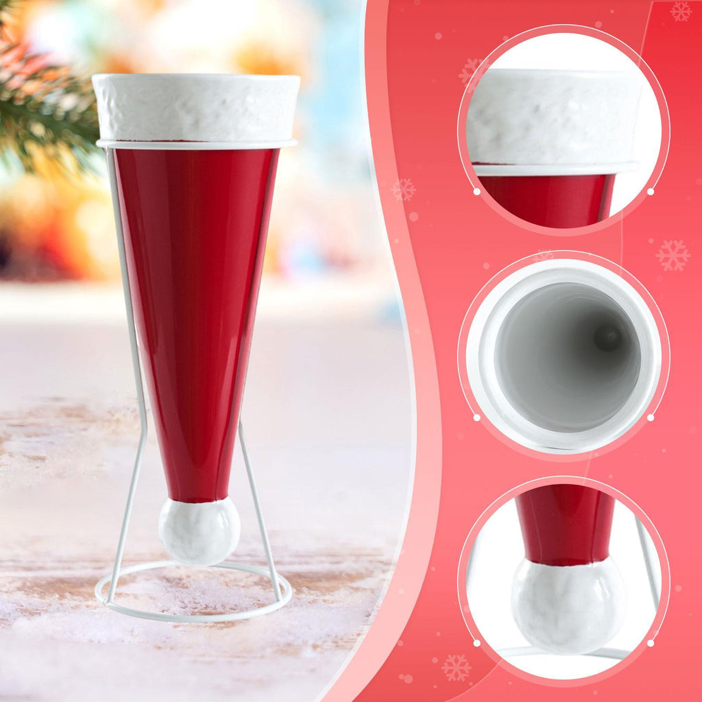 - 【Unique 2 in 1 Festive Design】: Display this charming piece upright as a classic Christmas hat, instantly adding a touch of holiday to your mantel, shelf, or tabletop. For a creative twist, simply flip it over to use as an elegant vase for your favorite Christmas flowers or winter greenery