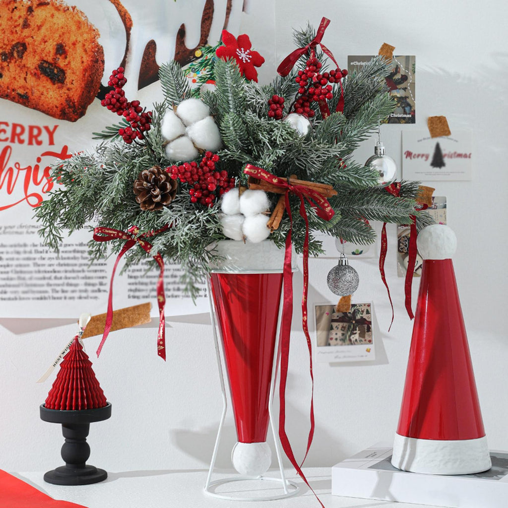 Christmas Hat Flower Vase Decoration for Office Table Centerpieces Bookshelf Red