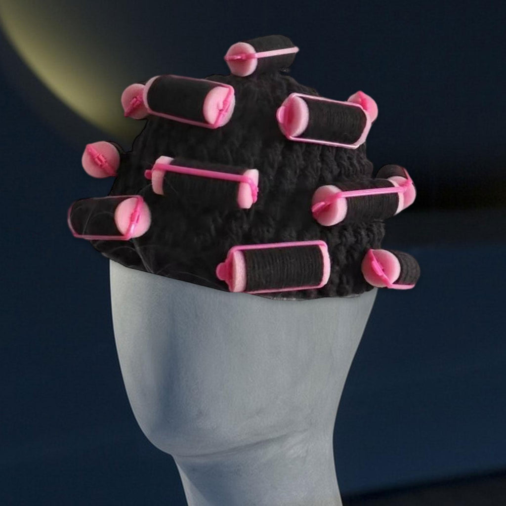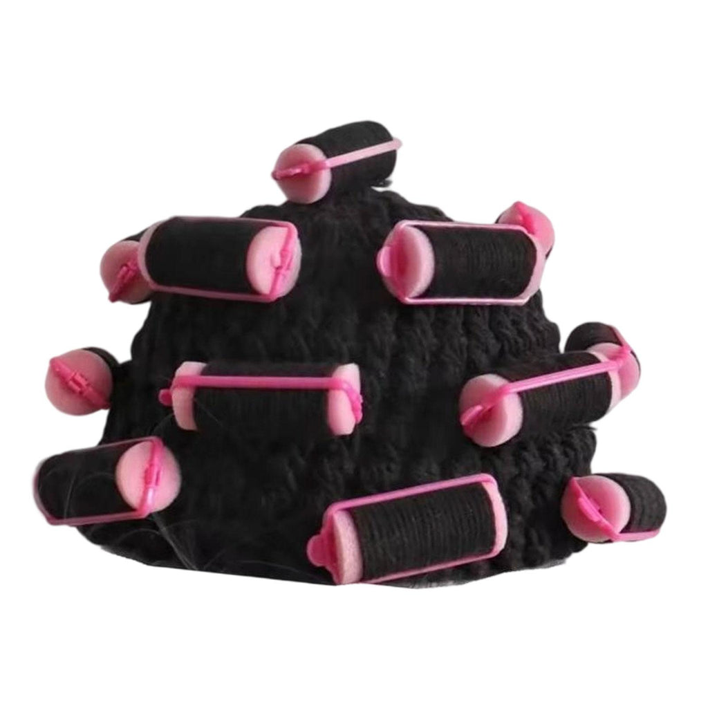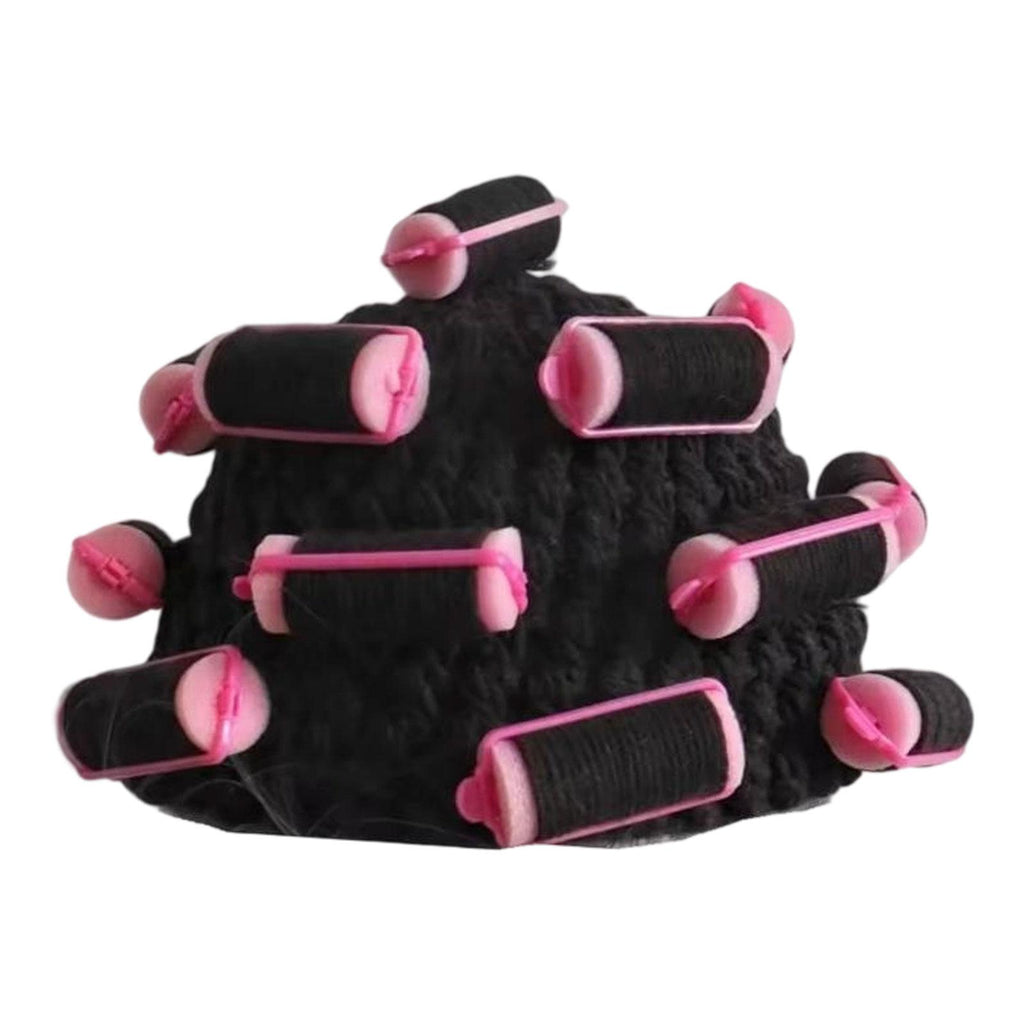 Maxbell Curler Wig Hat Funny Fashion Crochet Curler Hat for Cosplay Role Play Autumn black