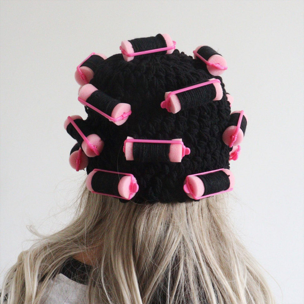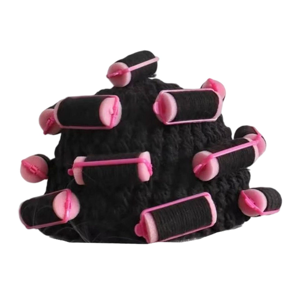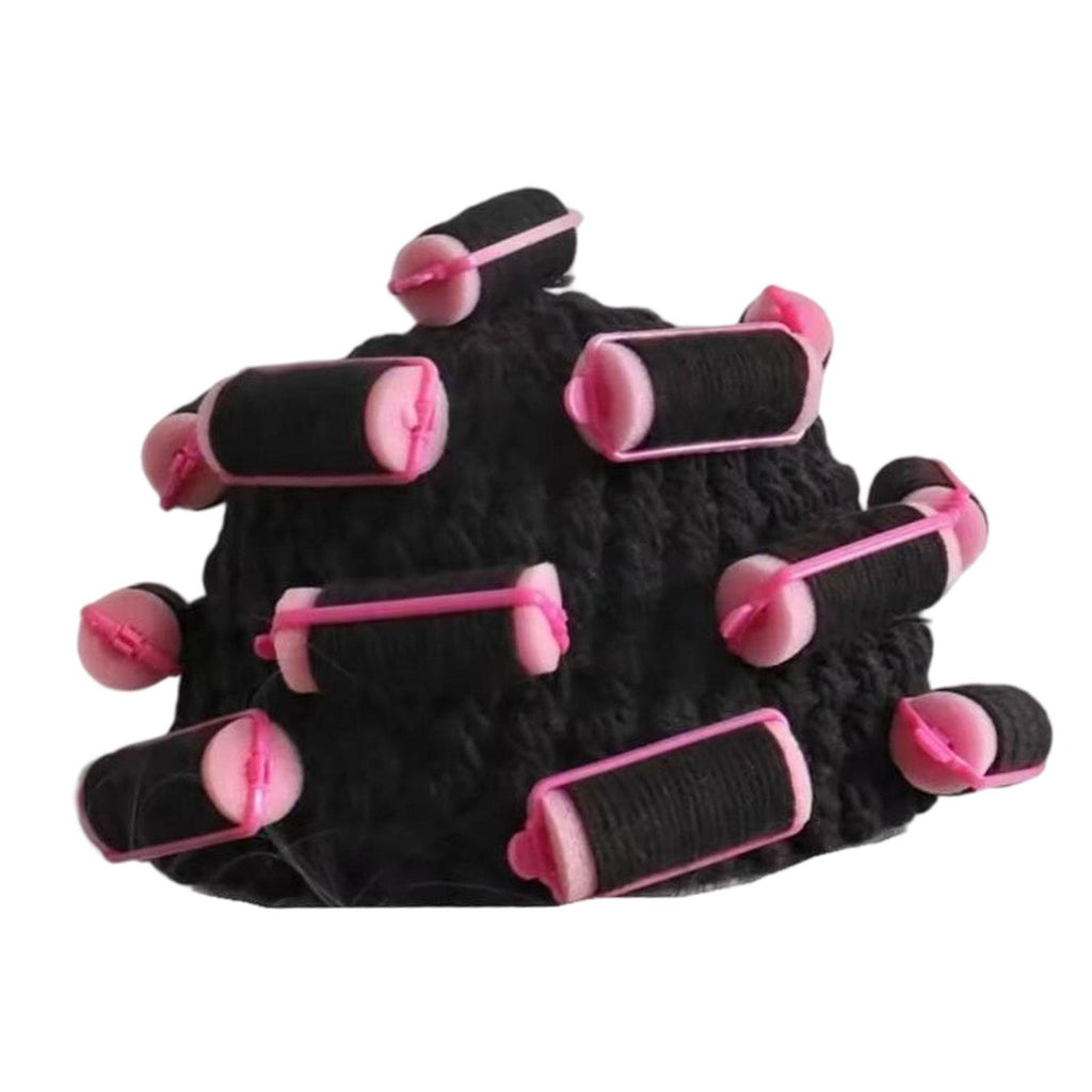 Maxbell Curler Wig Hat Funny Fashion Crochet Curler Hat for Cosplay Role Play Autumn black