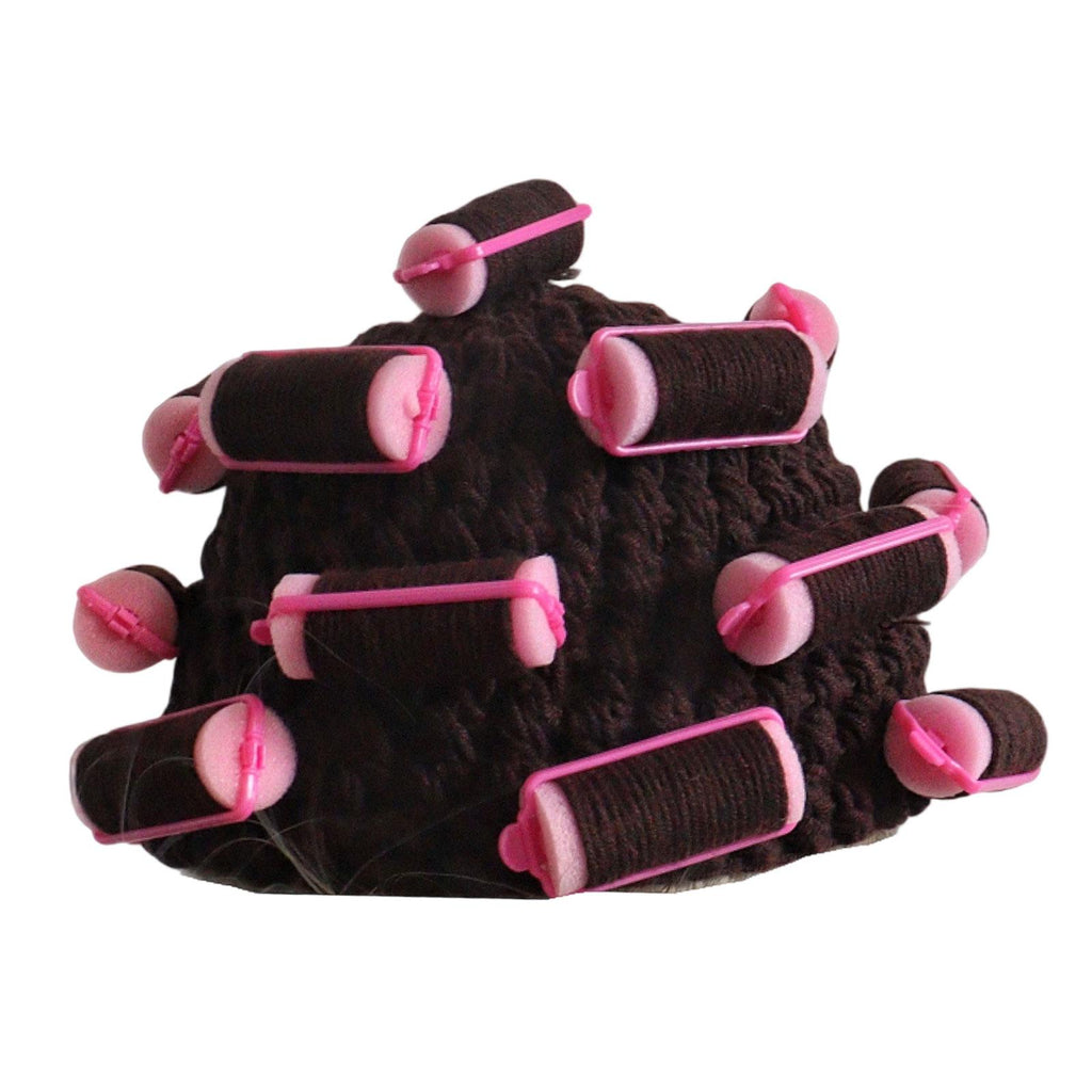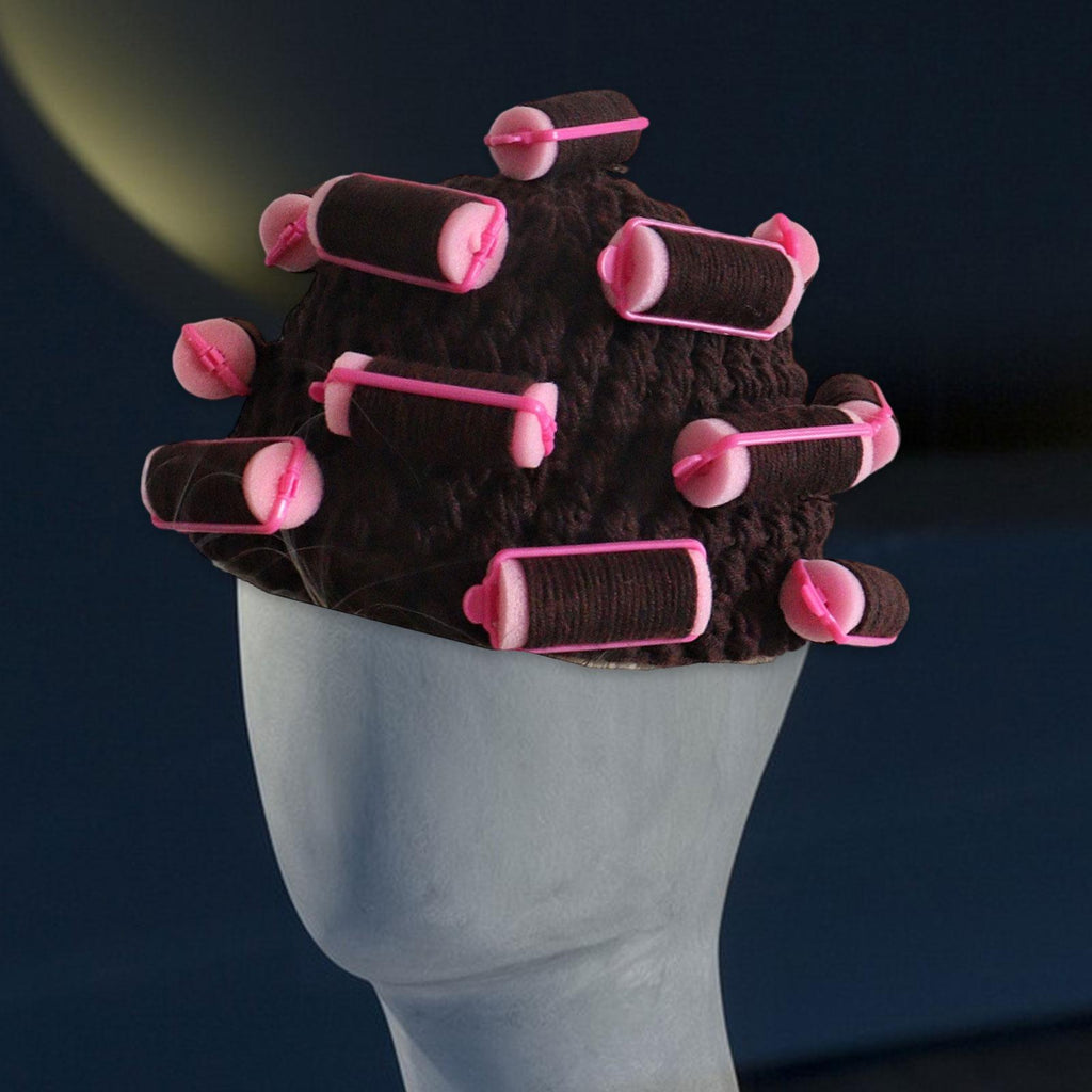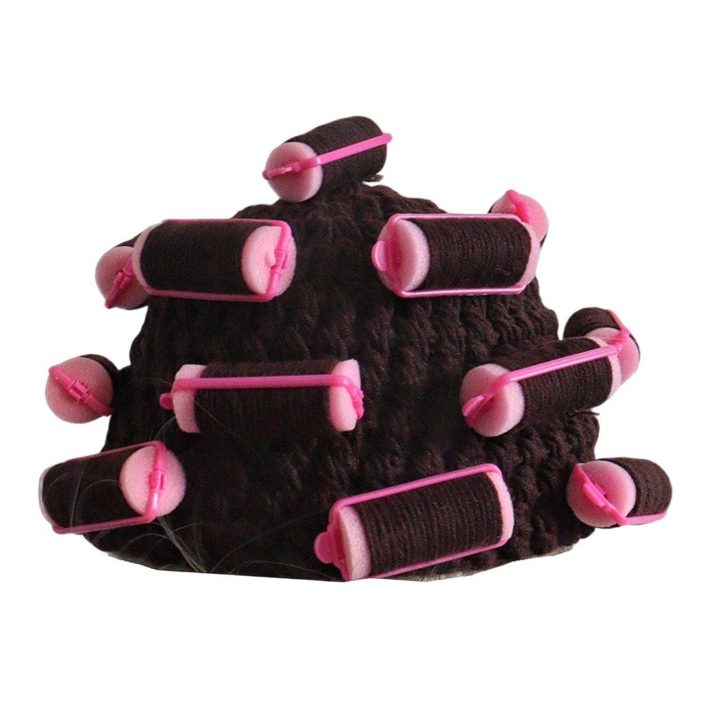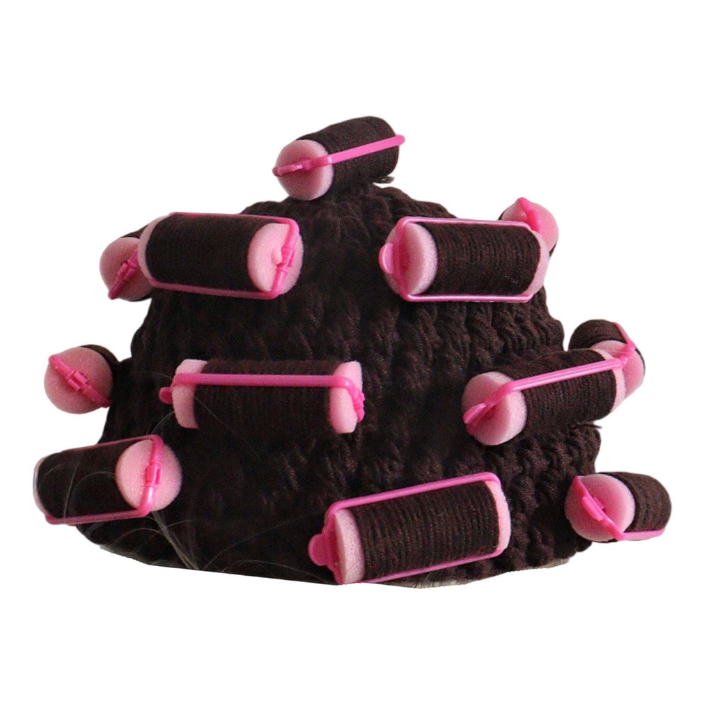 Maxbell Curler Wig Hat Funny Fashion Crochet Curler Hat for Cosplay Role Play Autumn dark brown