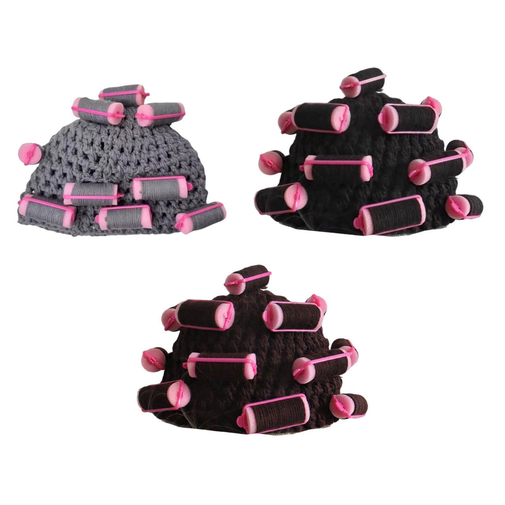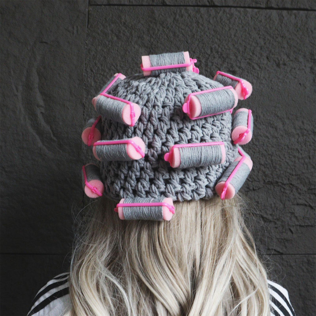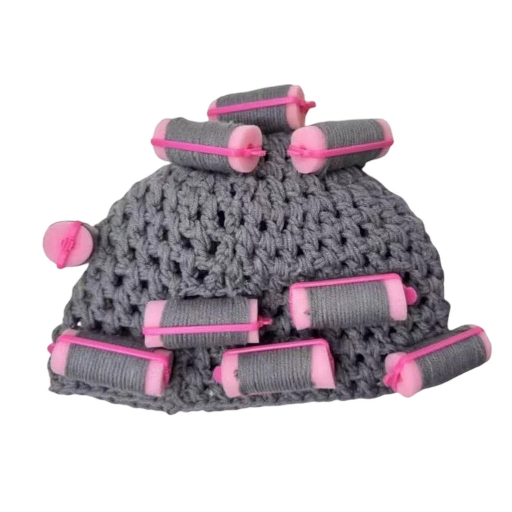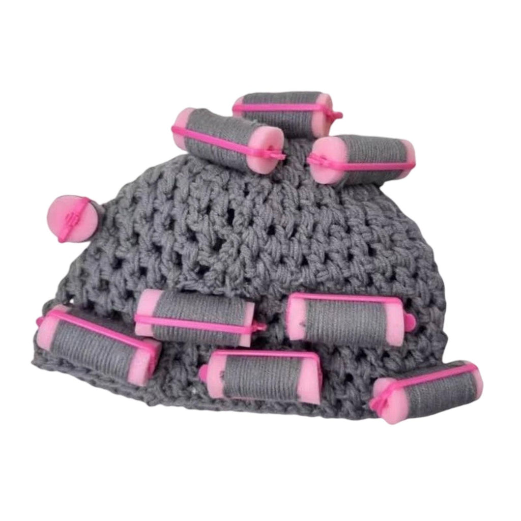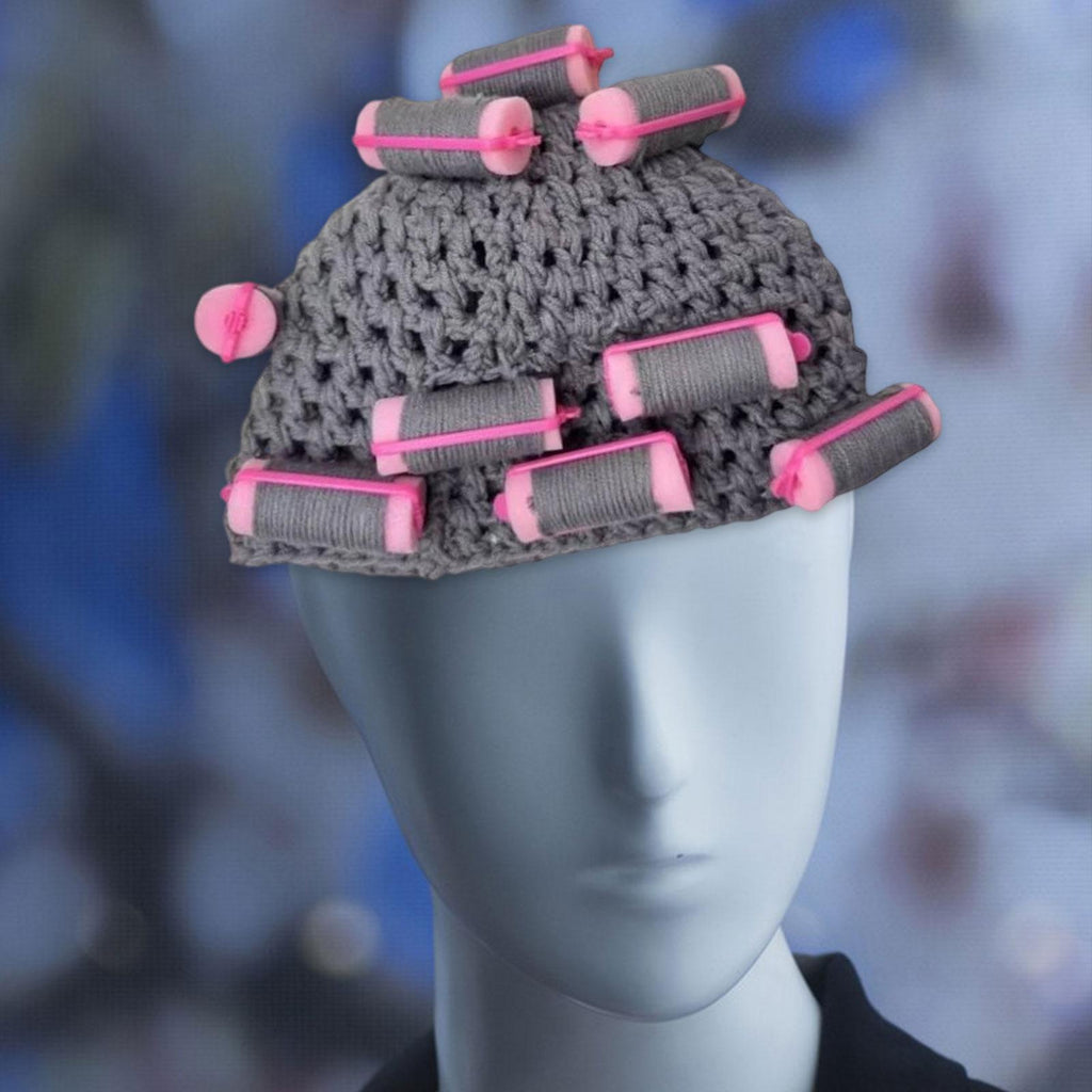 Maxbell Curler Wig Hat Funny Fashion Crochet Curler Hat for Cosplay Role Play Autumn grey