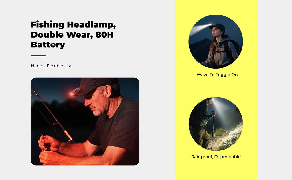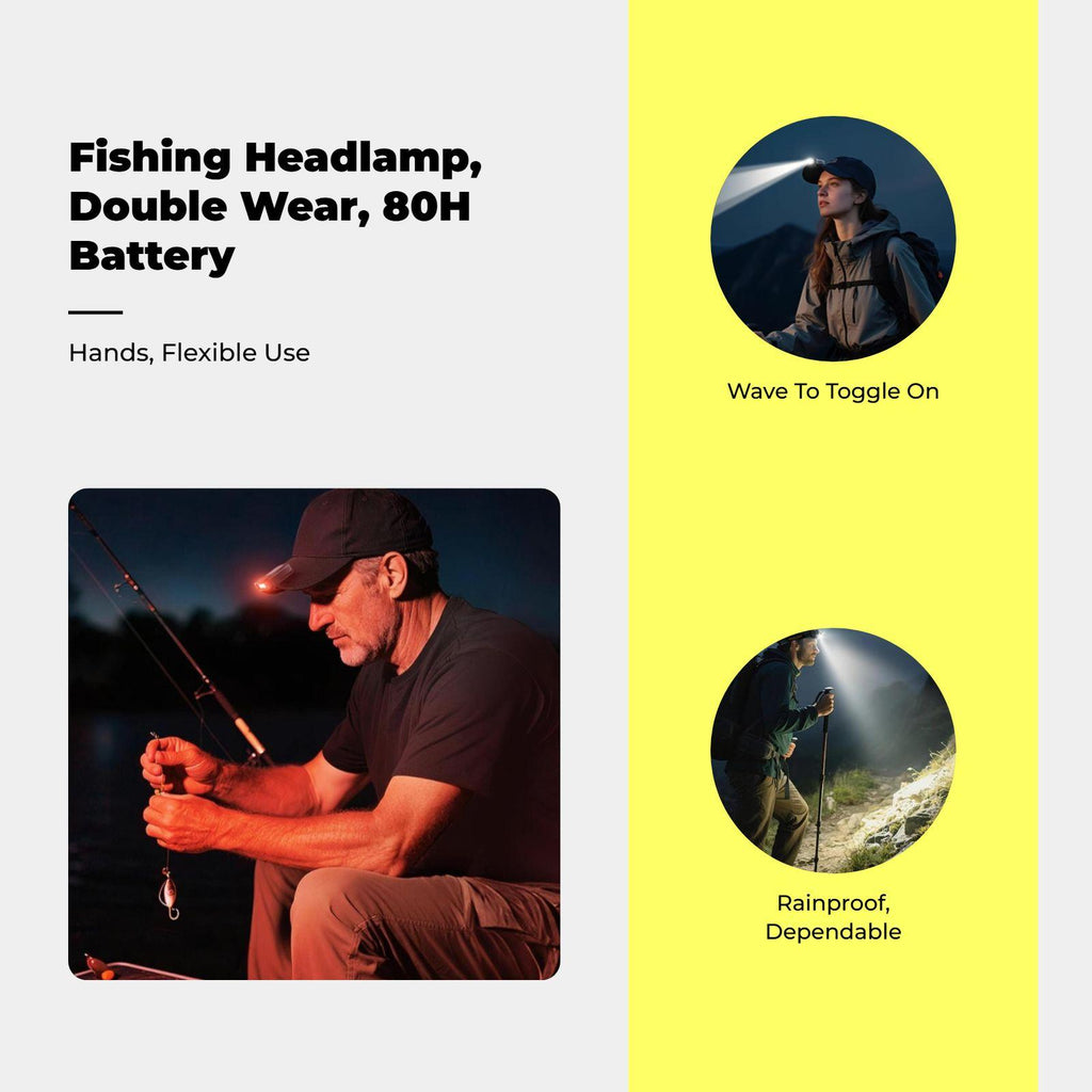 【Extremely Bright Headlamp for Outdoor Activities】This rechargeable headlamp delivers powerful lighting and features a convenient hat attachment design, making it perfect for fishing, camping, hiking, and nighttime adventures. 【Hands Motion Activation】Equipped with a sensitive motion, this headlamp offers hands, making it perfect for emergency repairs, running, and cycling. 【Long Battery Life & Universal Type-C Charging】enjoy from extended battery life and fast universal Type-C charging, suitable for outdoor expeditions and power outages. 【Adjustable & Comfortable Fit】With an adjustable angle and comfortable fit for adults, this headlamp ensures dependable use during climbing and backpacking. 【Waterproof sturdy Construction】Built with waterproof materials and a sturdy design, this headlamp can withstand tough weather conditions, making it a practical choice for fishing, camping, and outdoor sports.Specification: