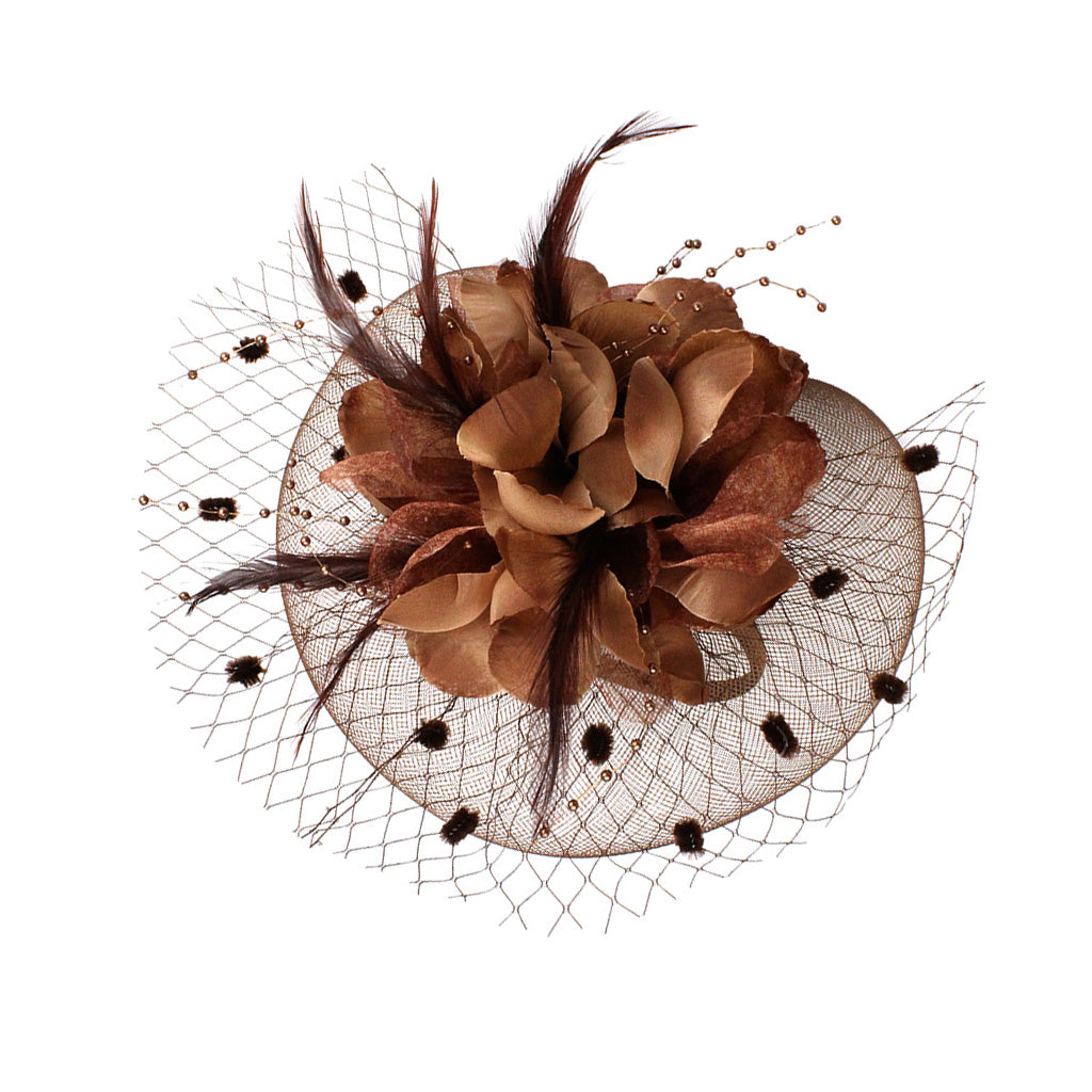 Maxbell Lady Flower Fascinator Hat Hair Band Cocktail Party Headpiece Coffee