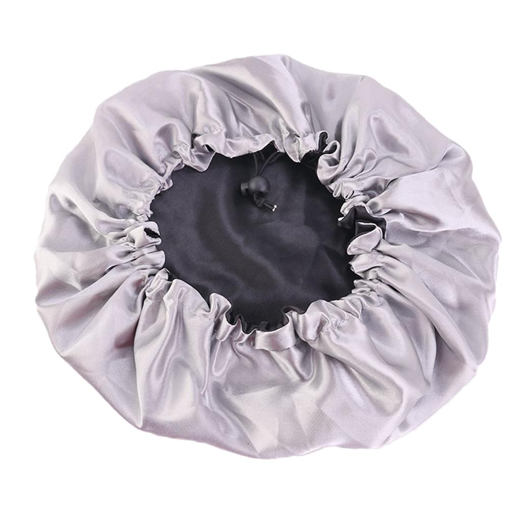 Elastic Women Satin Night Sleep Cap Hair Bonnet Hat Shower Cap Black