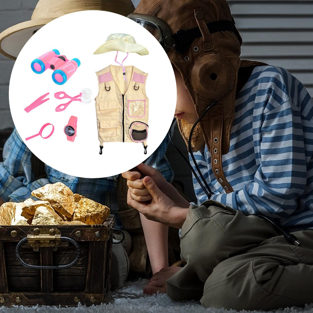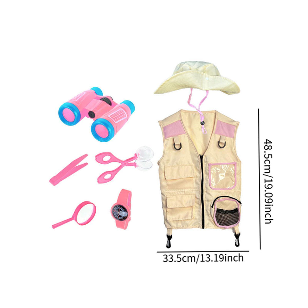 Maxbell Outdoor Exploration Set Cargo Vest and Hat and Accessories for Children Kids Pink
