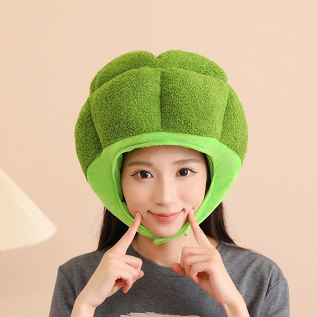 Maxbell Plush Headgear Hat Broccoli Headwear Photo Props Headdress Toy Vegetable Hat