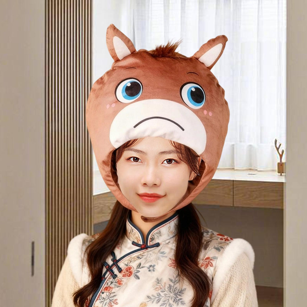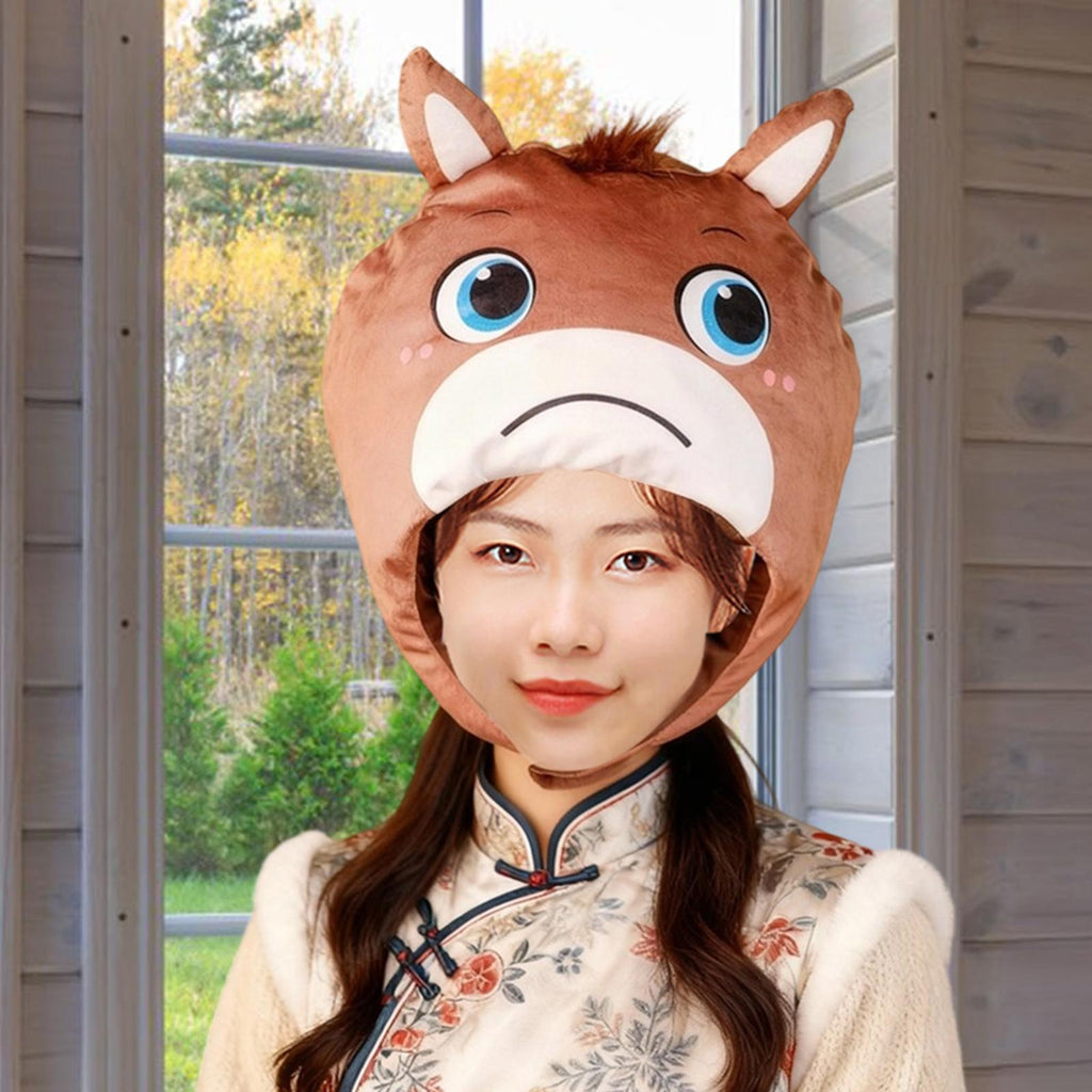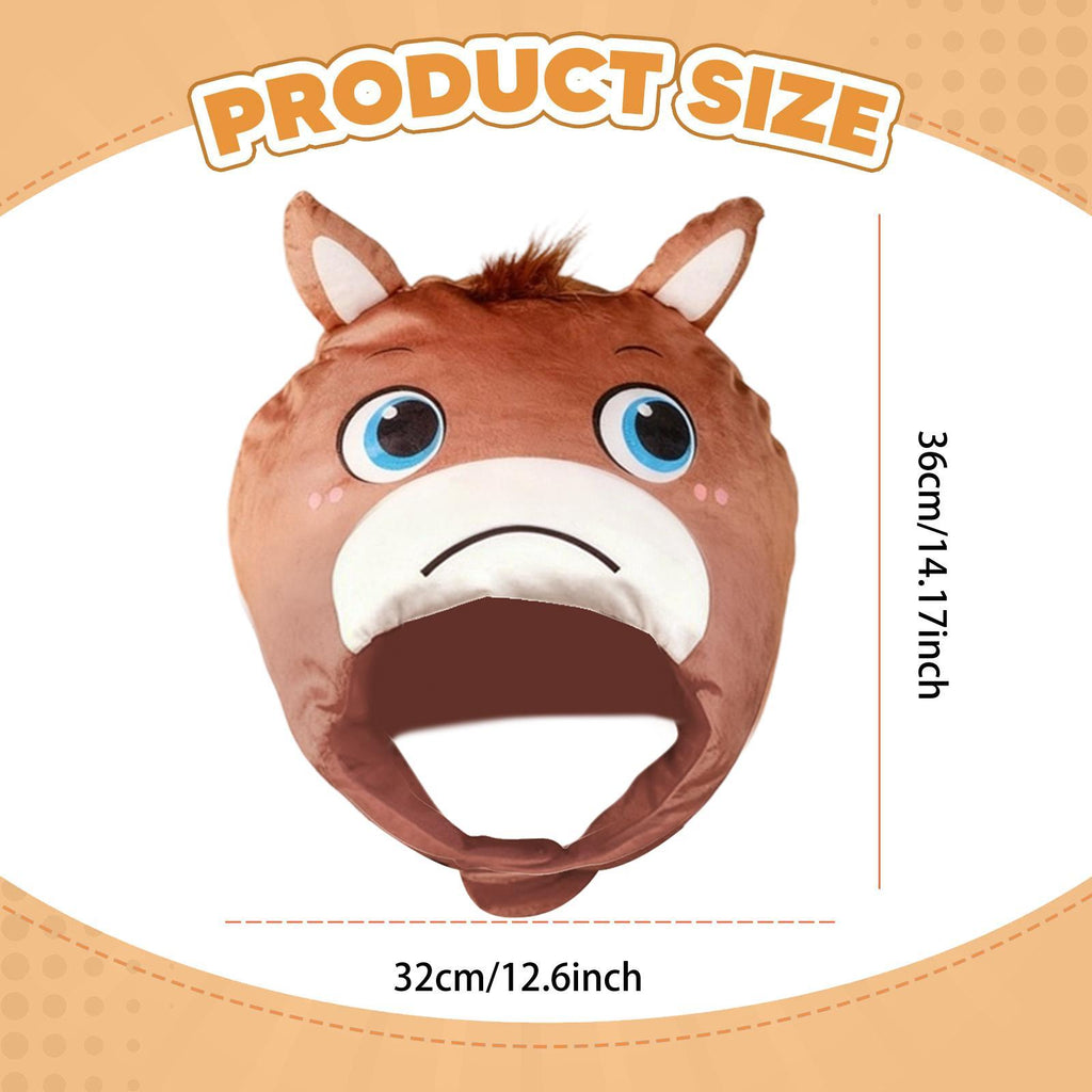- 【Featival decor】: The Plush animal Headgear Combines horse head design, with oversized eyes and cute pouty mouth, bringing joyful holiday spirit to any event