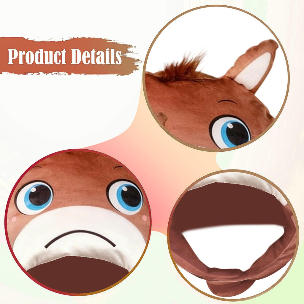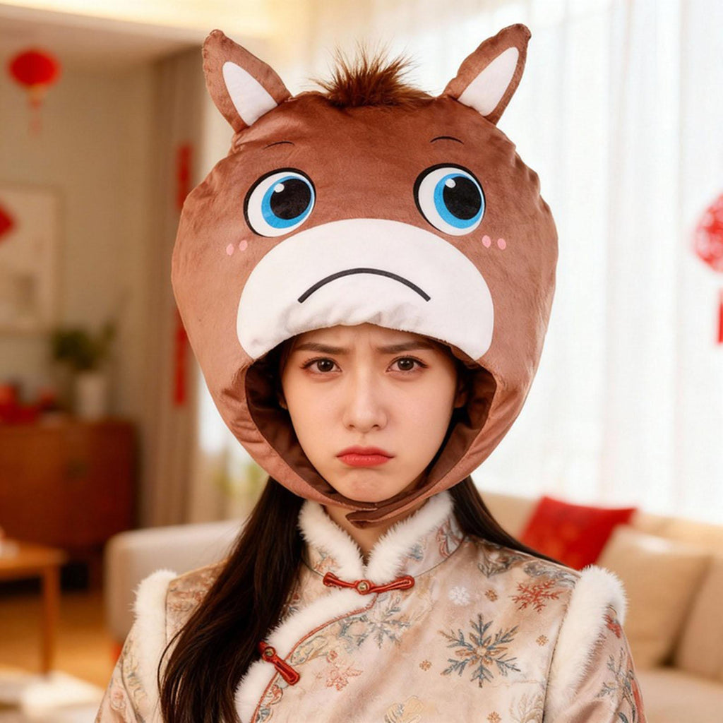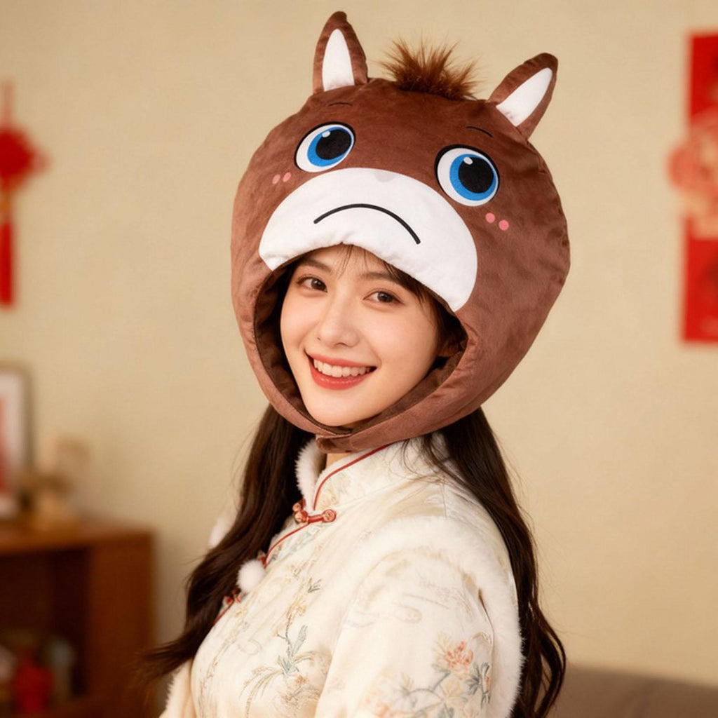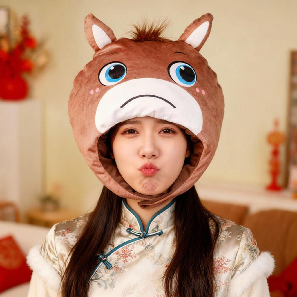 - 【Featival decor】: The Plush animal Headgear Combines horse head design, with oversized eyes and cute pouty mouth, bringing joyful holiday spirit to any event